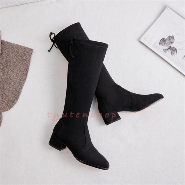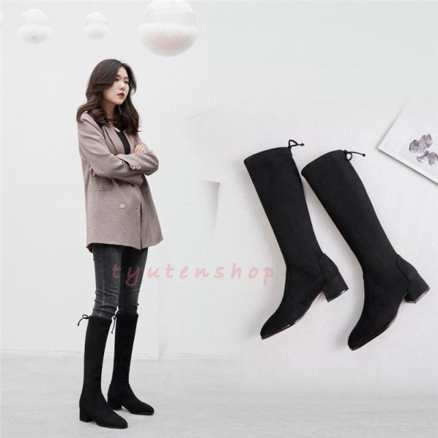 ロングブーツレディースブーツ/ ブーティーロングブーツ/黒走れる パンプス韓国風短靴4cmヒールブーツリッポン美脚大きいサイズパンプス/秋冬用おしゃれブーツ