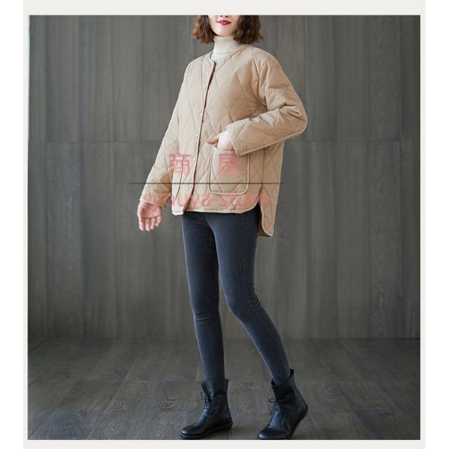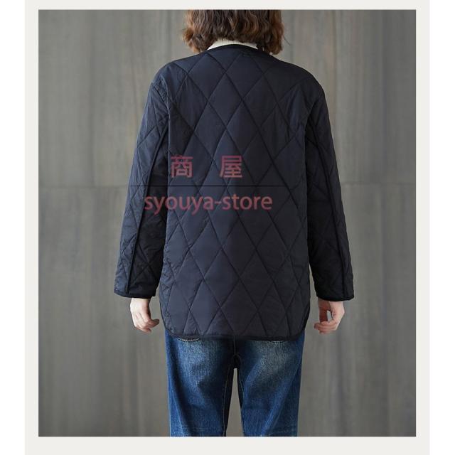 キルティングコート レディース ノーカラージャケット 40代コート 秋服 体型カバー おしゃれ ブラック 秋物 キルティングコート 韓国風 カジュアル