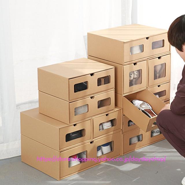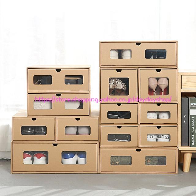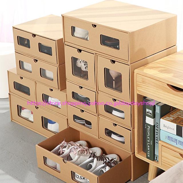 靴収納ラック 引き出し式 クラフト紙 靴収納 靴収納ボックス シューズボックス シューズケース 1個セット 片付け 玄関収納 下駄箱 積み重ね シューズボックス