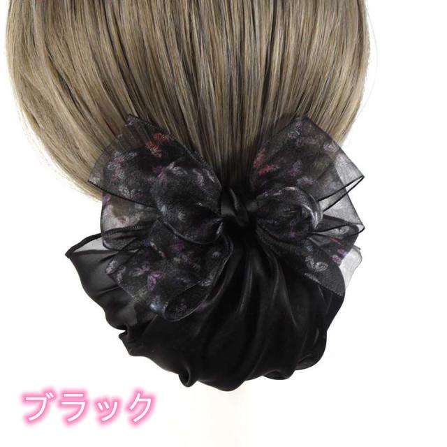 まとめ髪 ポイント 和装 カバーつき まとめ髪 入学式 グレー お団子 ヘアアクセサリー ピンク 卒園式 髪留め シニヨン 髪飾り リボン ブラック 職場 オフィス 就活 受験 葬式 仕事 シニヨン