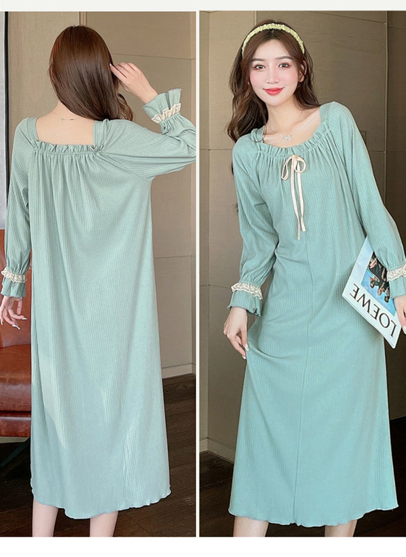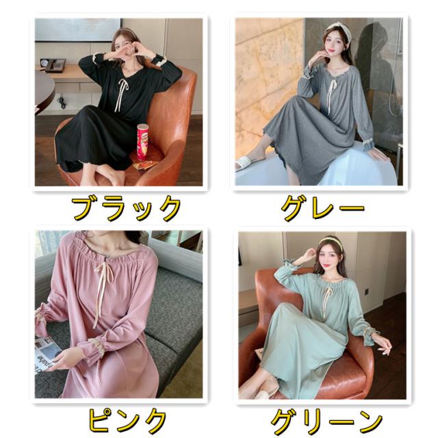 全4色 全4色 フリル ロング 綿 ワンピース パジャマ ゆったり 寝巻き 女性用 部屋着 長袖 大人 お姫様風 春秋 ルームウェア レディース コットン 柔らか ロング丈 ネグリジェ