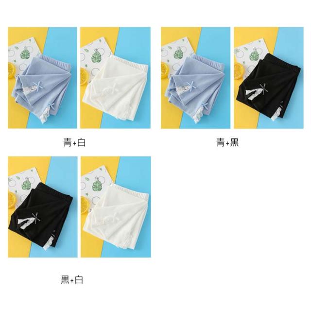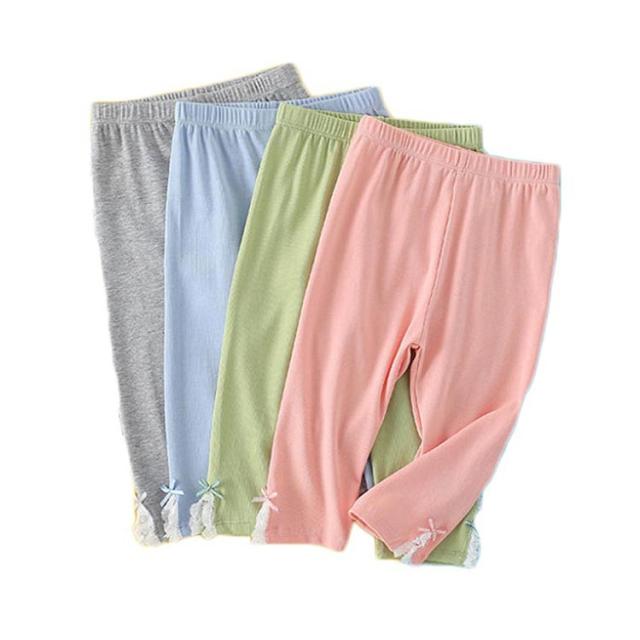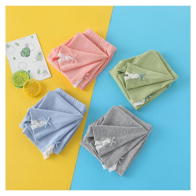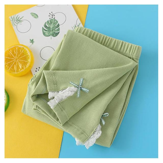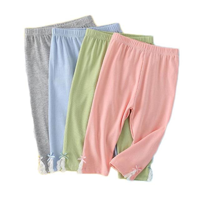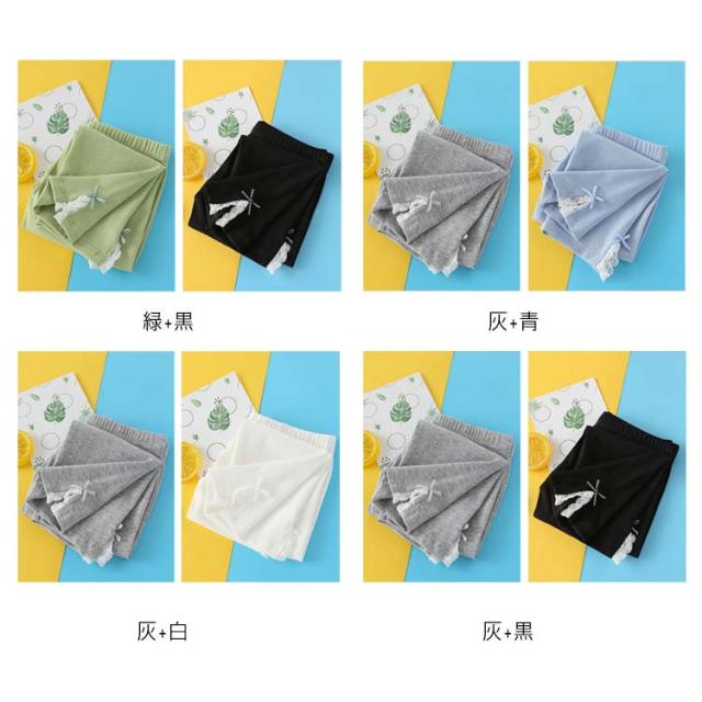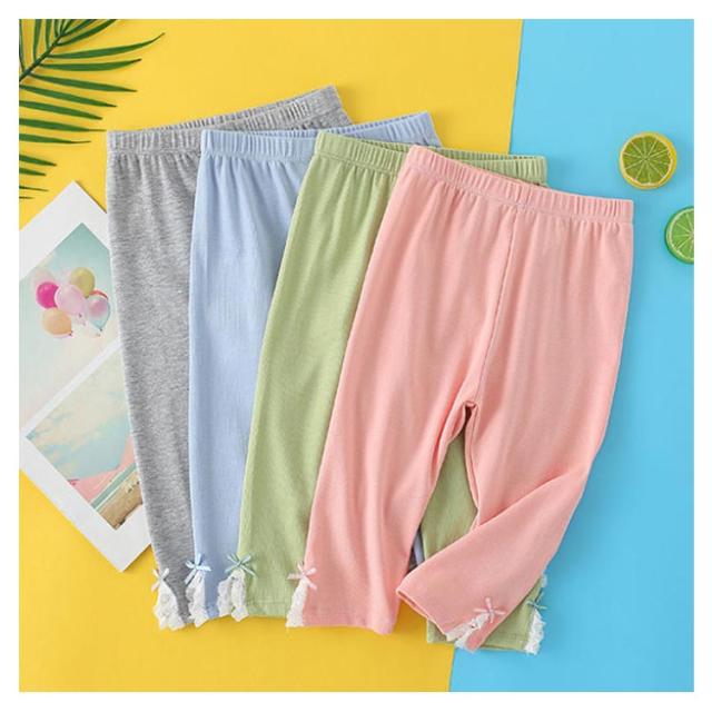 キッズ ウエストゴム 2点セット インナーパンツ スリット入り 夏 送料無料 コットン 7分丈 リボン キッズ レギンス パンツ レースレギンス 無地 シンプル ボトムス スパッツ ナチュラル 女の子 女児 薄手