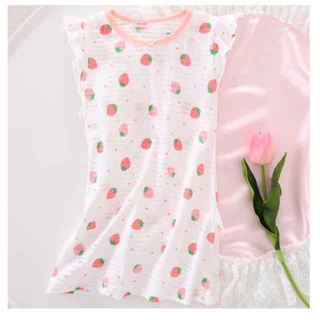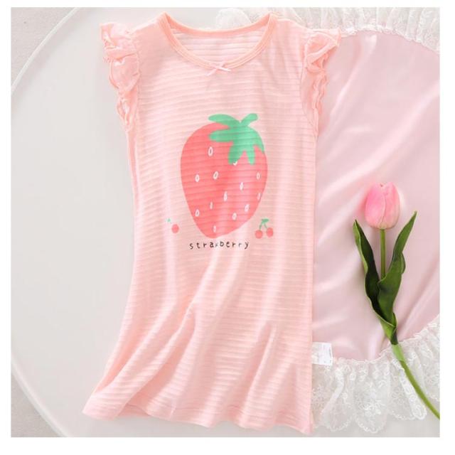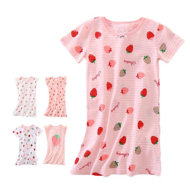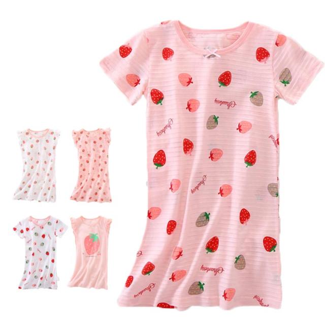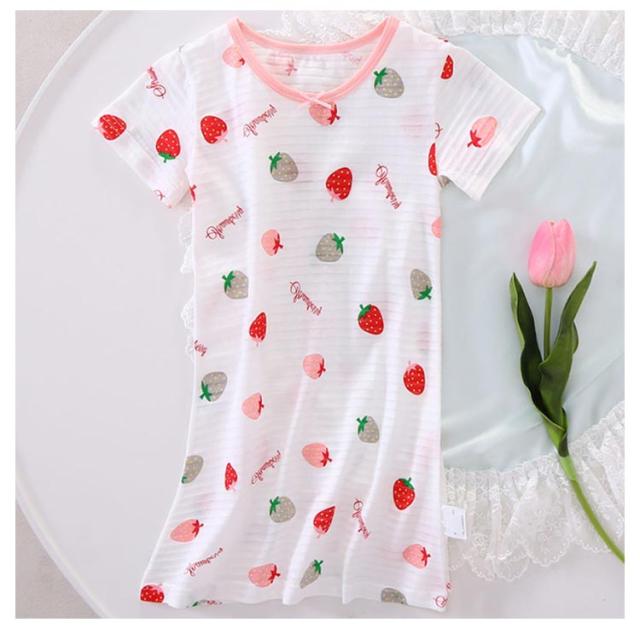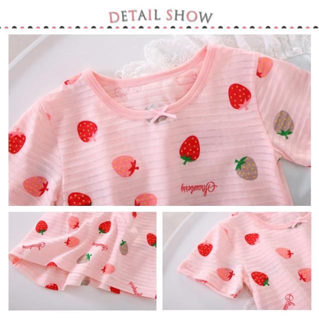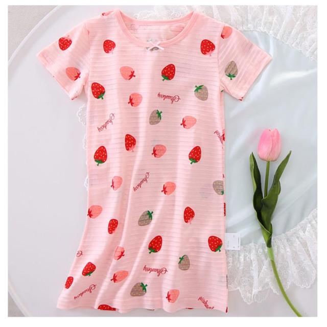 半袖 夏 パジャマ イチゴ柄 ルーム服 リボン コットン キッズ ロング丈 薄手 ワンピース ベビー服 ルームウエア パジャマワンピース 送料無料 おしゃれ ジュニア シンプル カジュアル キッズ