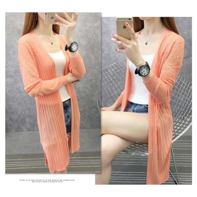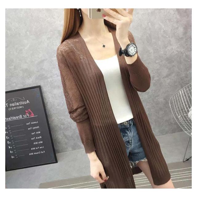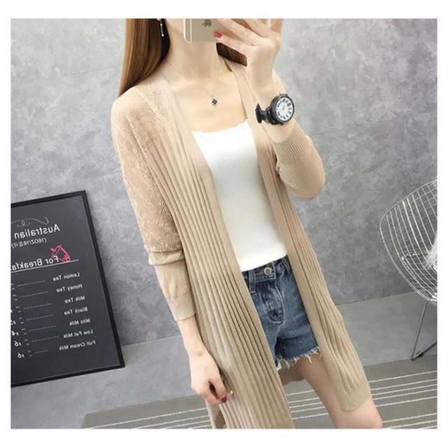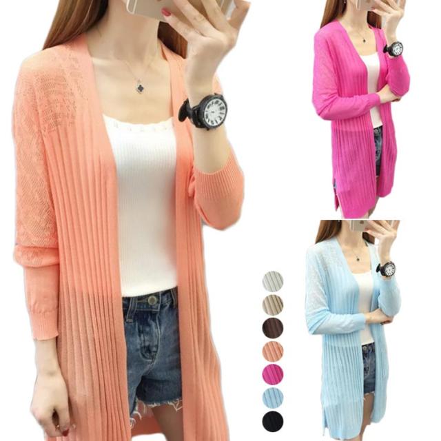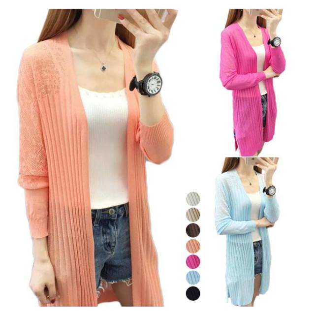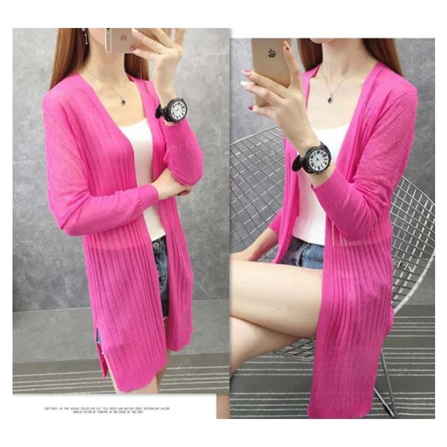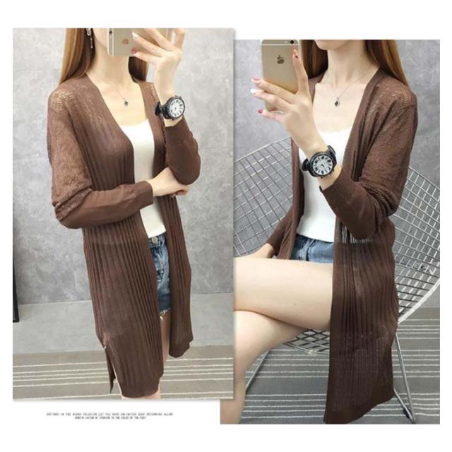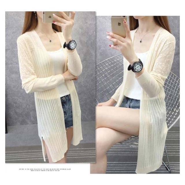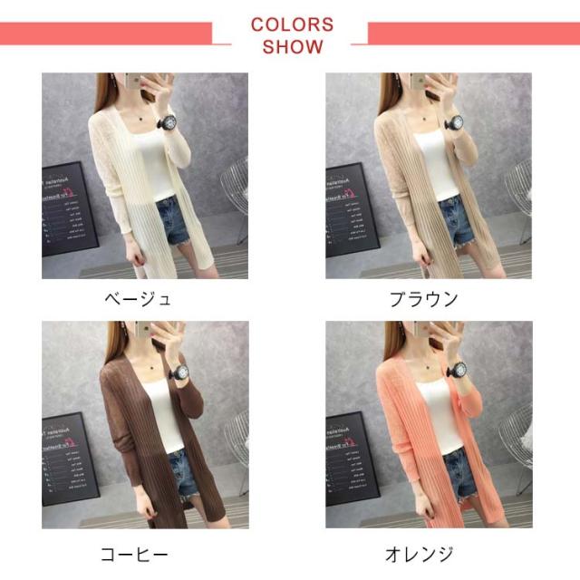 夏 ロングカーディガン ロング 夏 vネック ミディアム丈 長袖 ニットカーディガン ゆったり 薄手 無地 レディース カーディガン スリット付き ニット 送料無料 シンプル サマーカーディガン