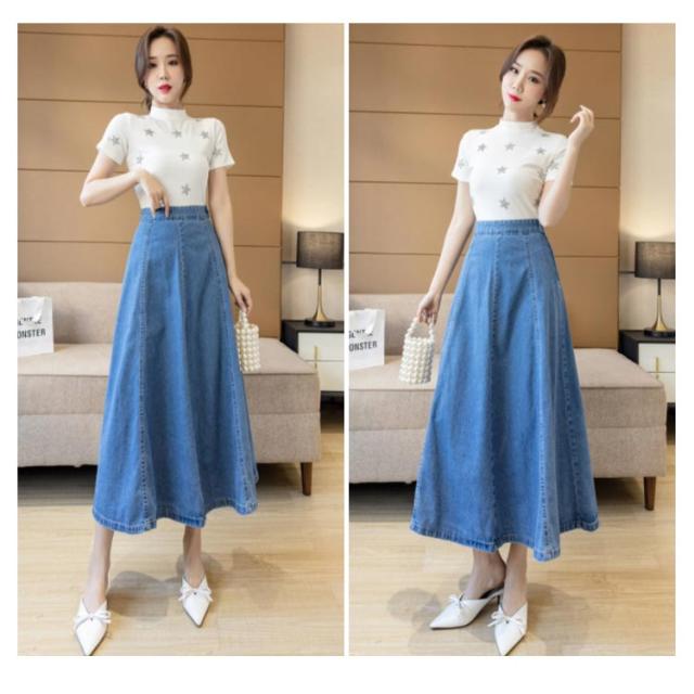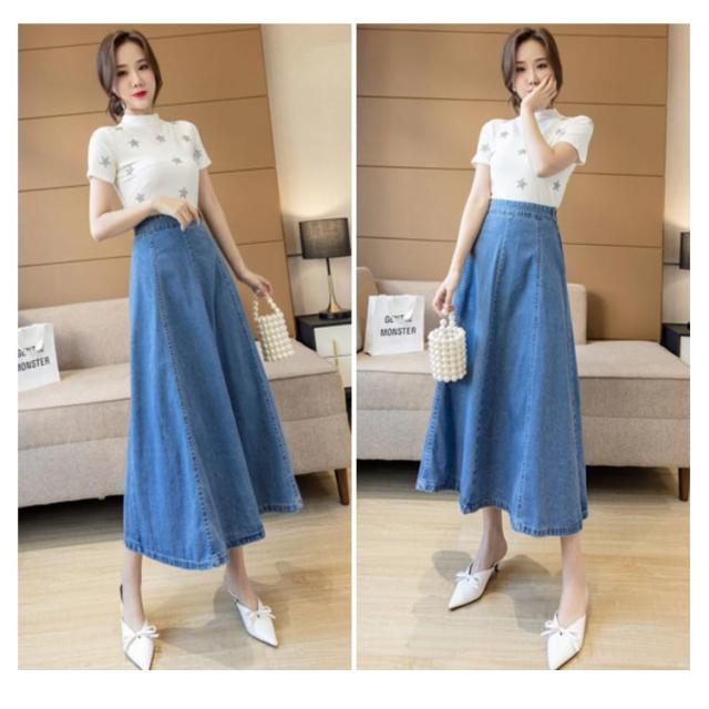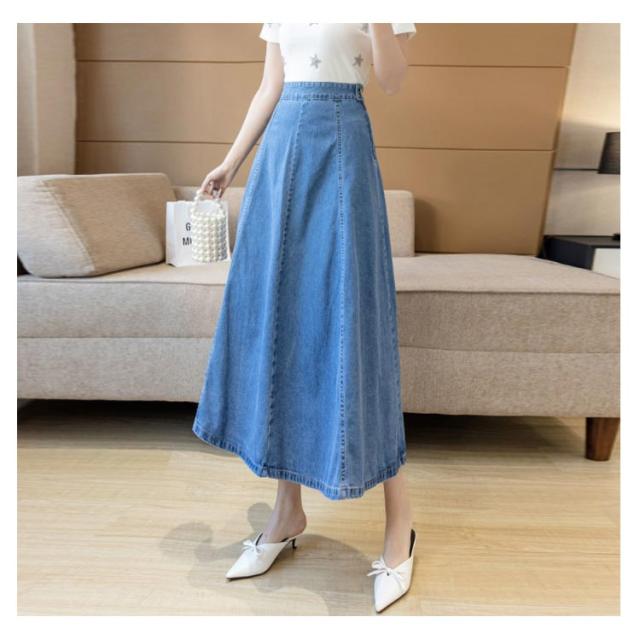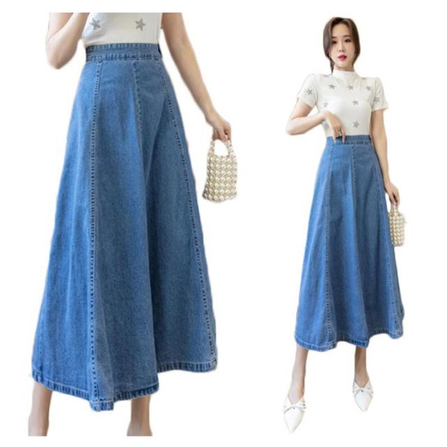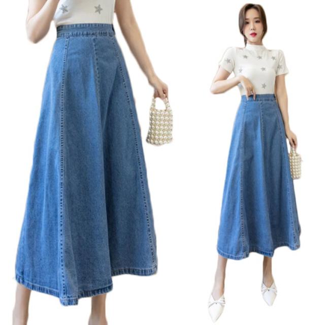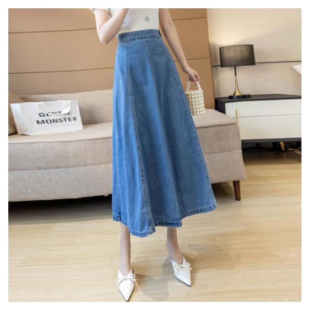 Aラインスカート デニムスカート 膝下 フレアスカート 韓国系 春用 レディース カジュアル ハイウエスト ロング丈 シンプル レディース オファイス ボトムス ミモレ丈
