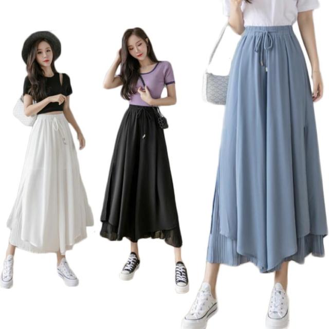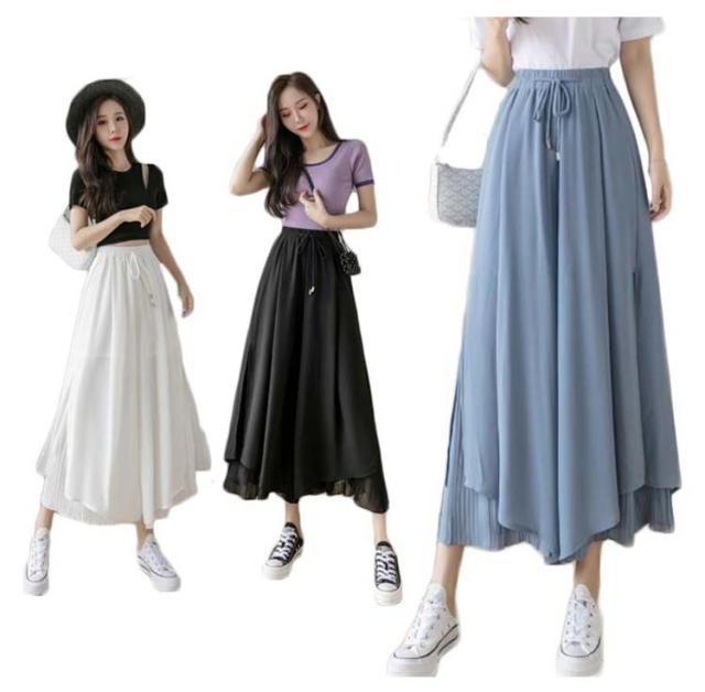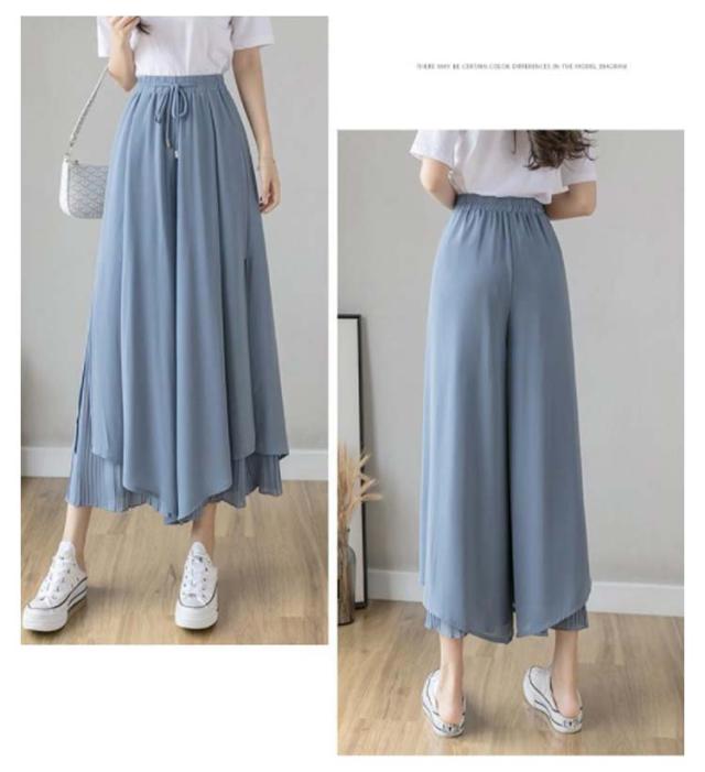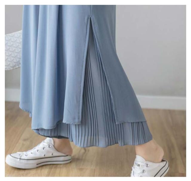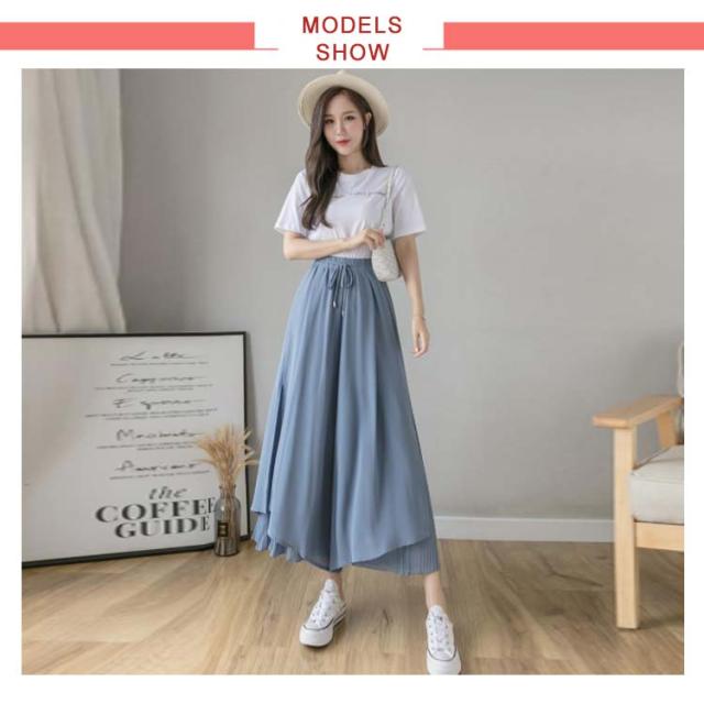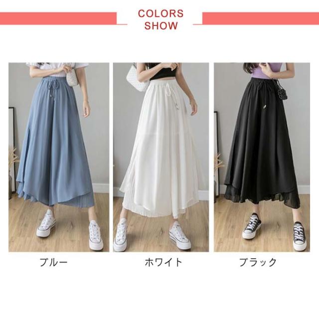 ロングパンツ フレアパンツ レディース ワイドパンツ シファンパンツ プリーツパンツ ミモレ丈 パンツ 九分丈 ロング丈 着痩せ 韓国系 レディース