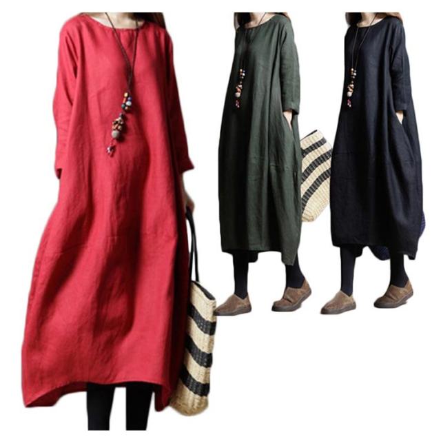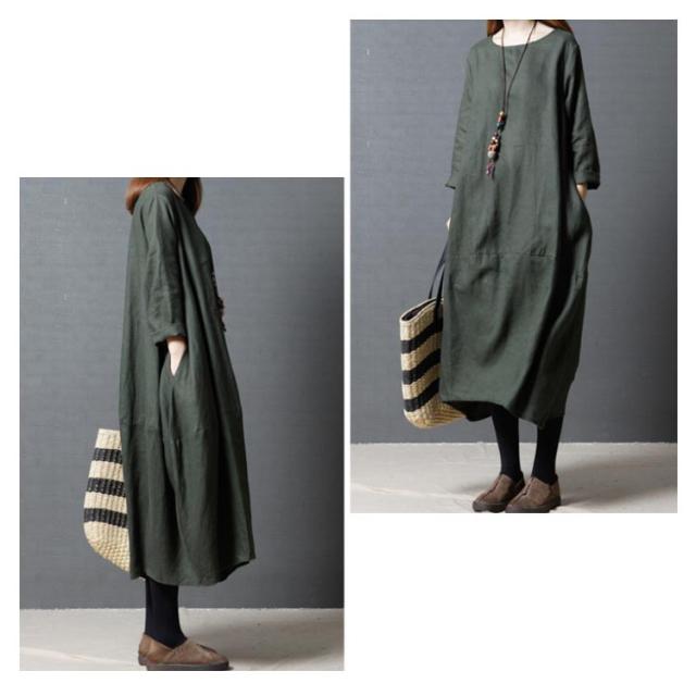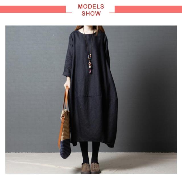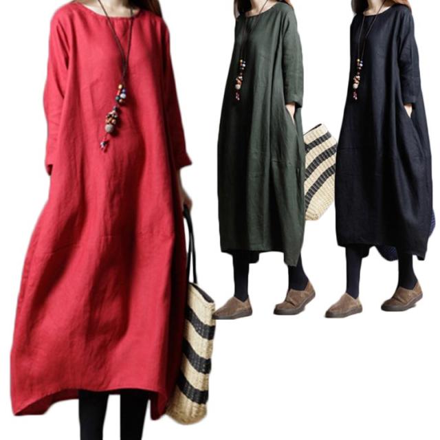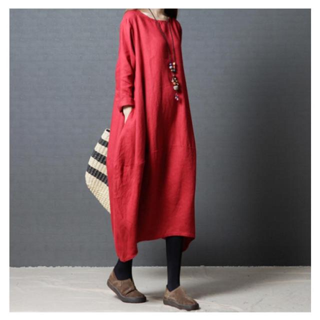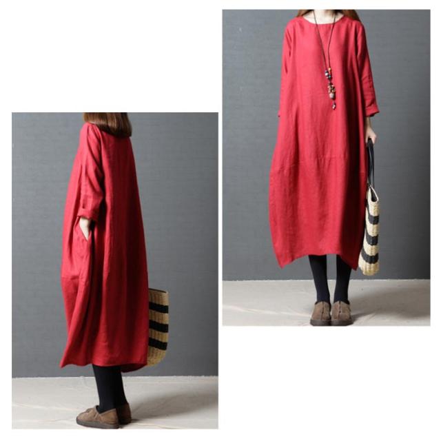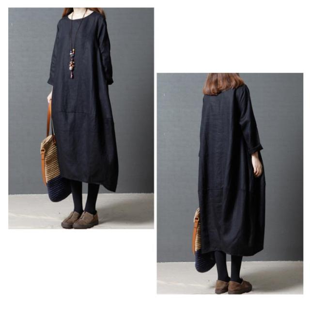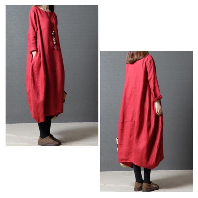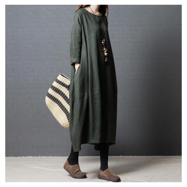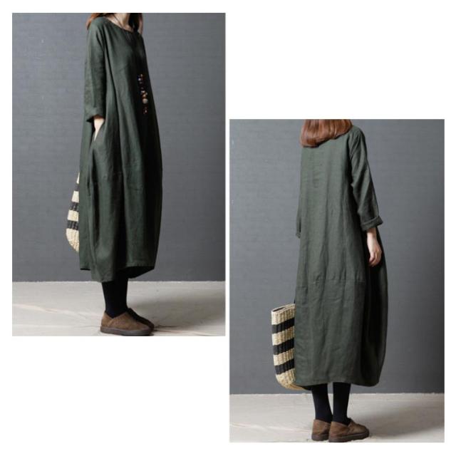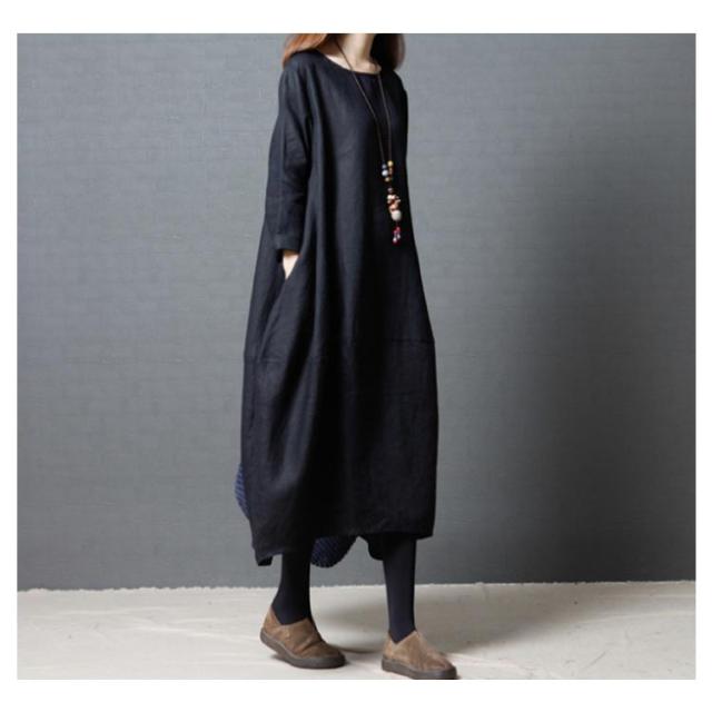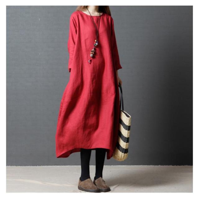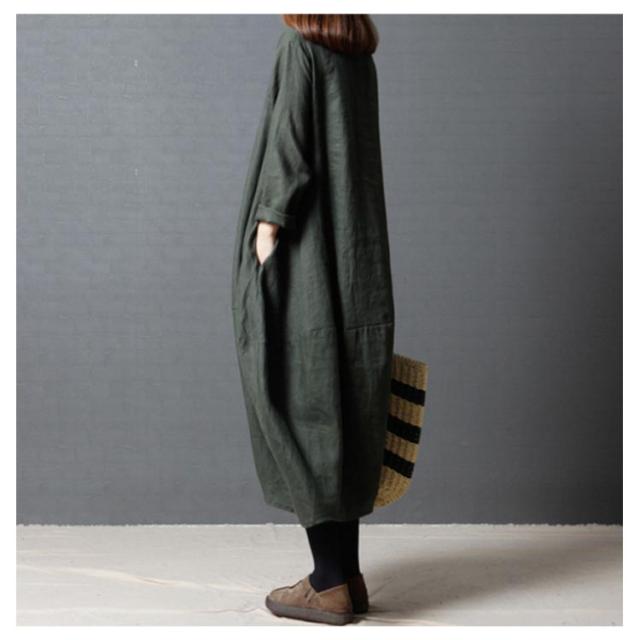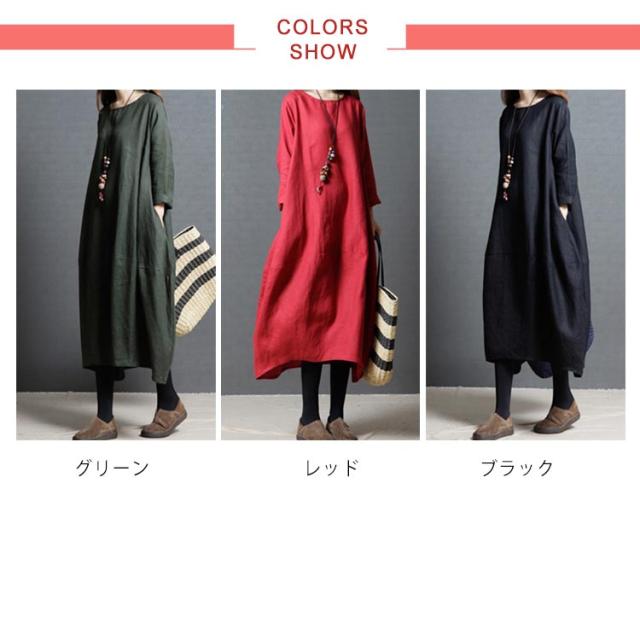 リネンワンピース 長袖 ワンピース 亜麻 ワンピース ロング丈 春 フレアワンピース ワンピ ロングワンピ 綿麻 ボート 混 レディース ネック バルーンシルエット 夏