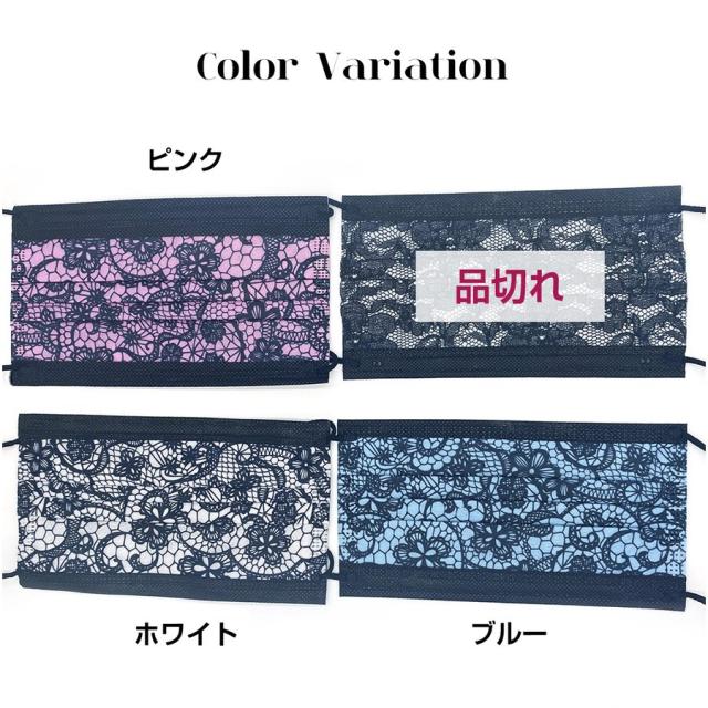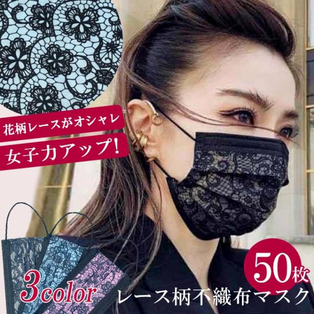 マスク マスク 50枚 不織布 レース 99%カット 花粉 ウイルス 感染症 風邪 対策 フィルター 3層構造 不織布マスク 使い捨て 優しい 黒 ブラック やわらか