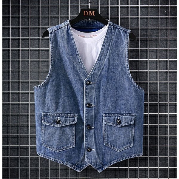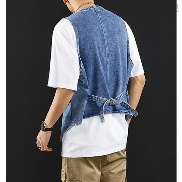お兄系 前開き チョッキ メンズ 袖なしデニムジャケット Gジャン デニムベスト レトロデニムアウター ノースリーブ 大きいサイズ チョッキ ジレー デニムベスト