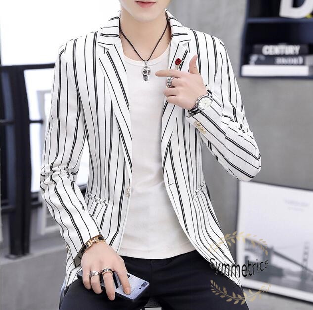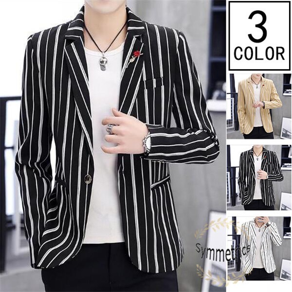 ストライプ メンズ 春 黒 長袖 白 カジュアルジャケット テーラードジャケット 秋 ブレザー 細身 メンズ