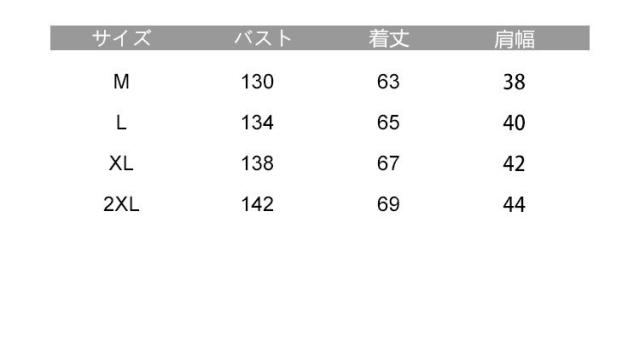 | サイズについての説明 | ■サイズ: M/L/XL/2XL ■商品写真はできる限り実物の色に近づけるよう加工しておりますが、お客様のお使いのモニター設定、お部屋の照明等により実際の商品と色味が異なる場合がございます。 ■サイズ詳細等の測り方はスタッフ間で統一、徹底はしておりますが、若干の誤差がある場合がございます。 |