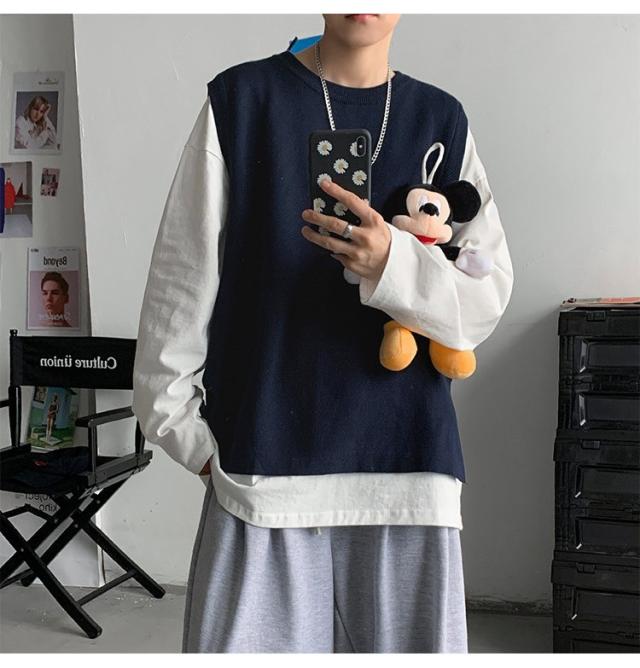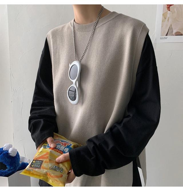 サマーニット メンズ ニット トップス ニットベスト クルーネック ニット