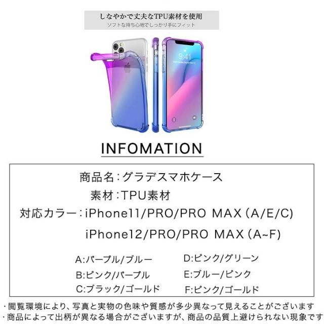| サイズについての説明 | 【対応機種】iPhone11/iPhone11Pro/iPhone11ProMAX/iPhone12/iPhone12Pro/iPhone12ProMAX/iPhone12mini 綺麗でオシャレなグラデーションが目を惹く♪ iPhoneケースです♪♪ |