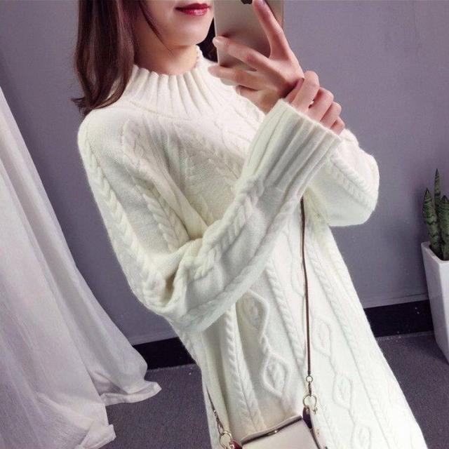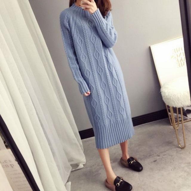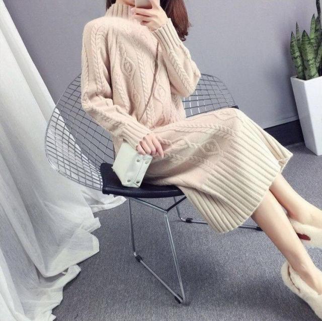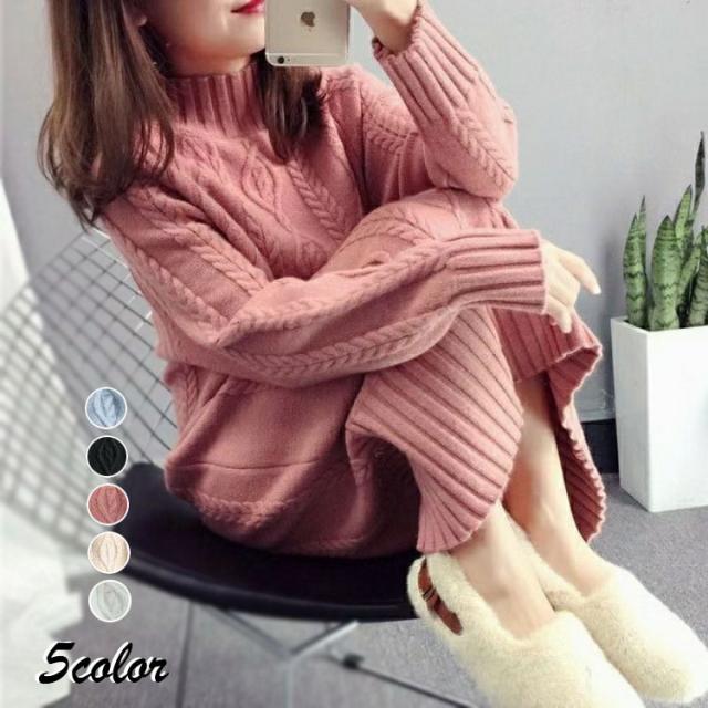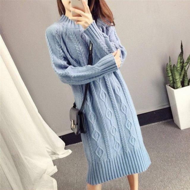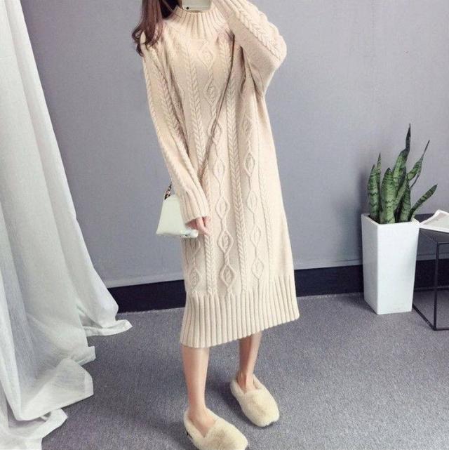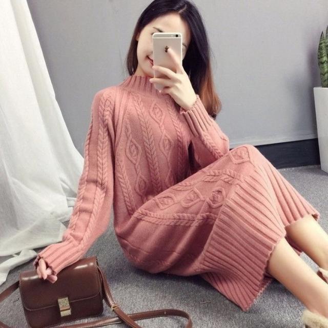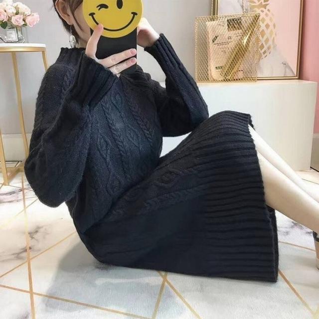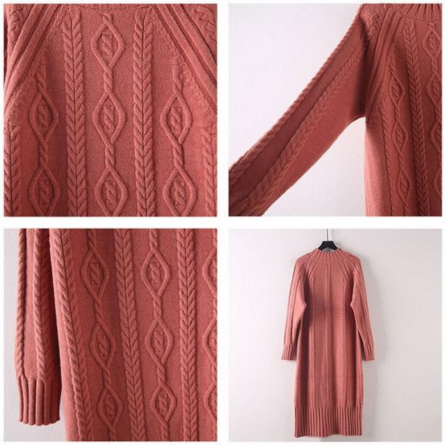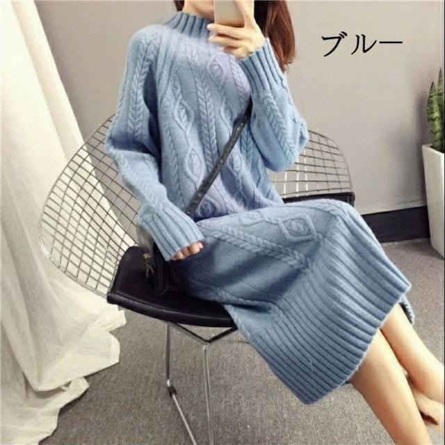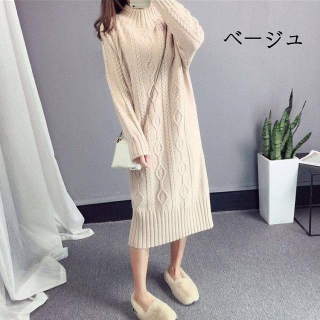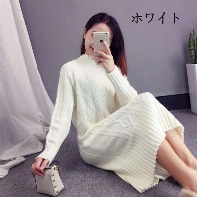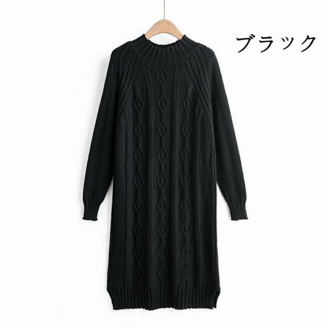 ニットワンピース ケーブル編み無地セーター 40代 秋冬 長袖ワンピース ニット ボトルネック ロングスカート 韓国風 ニットワンピース レディース