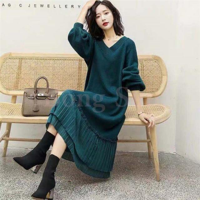ニットワンピース 韓国風 メリヤス ルロング丈 レディース 長袖 秋冬 タイトスカート 無地 ワンピース 着痩せ 上品 通勤 レディース