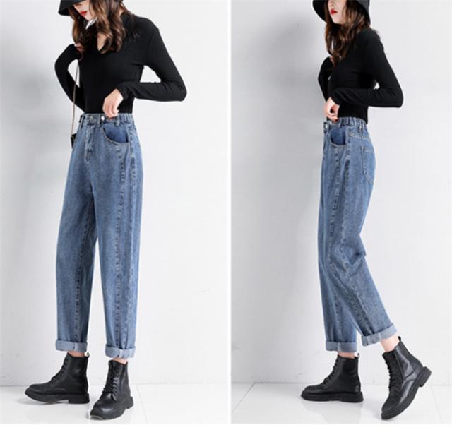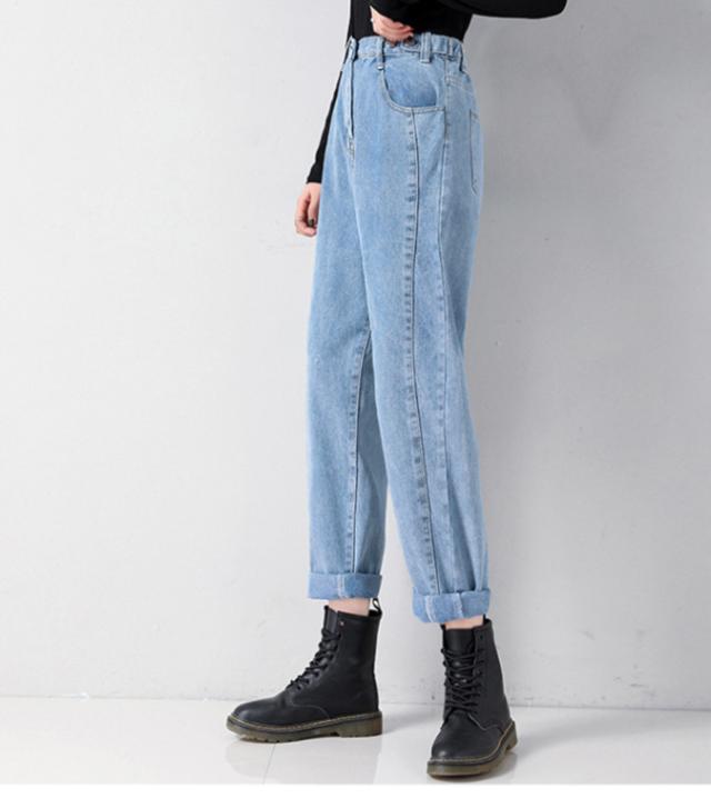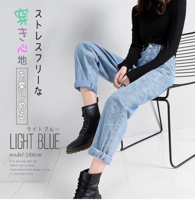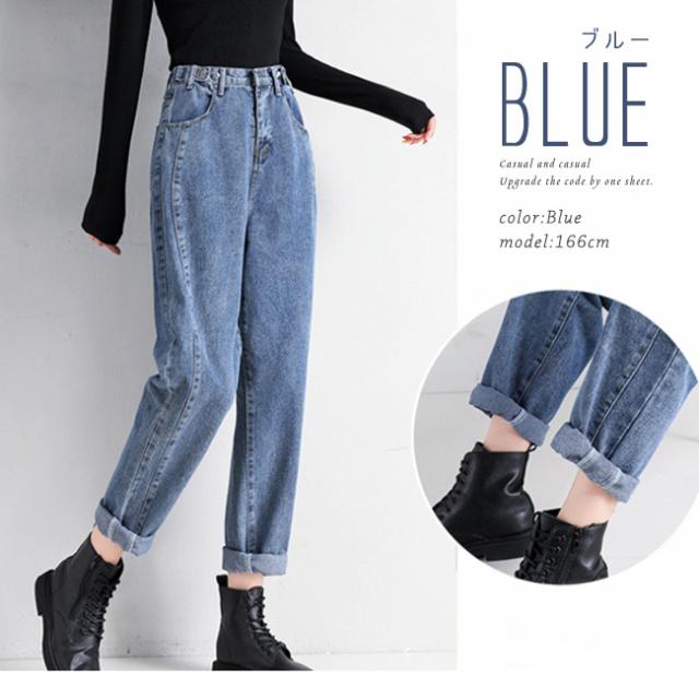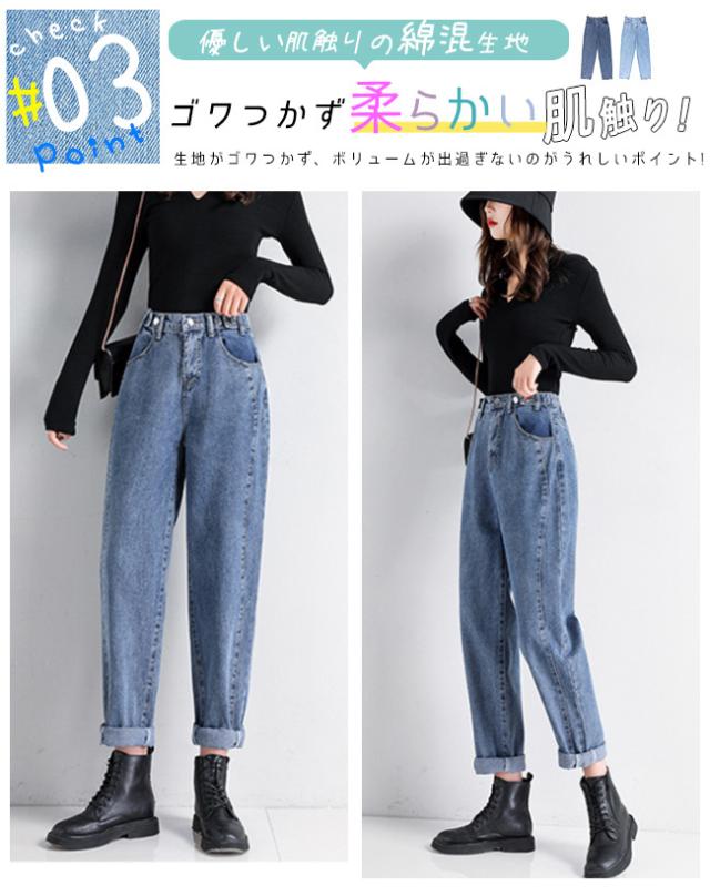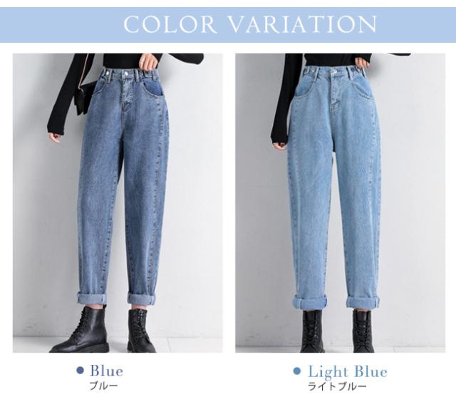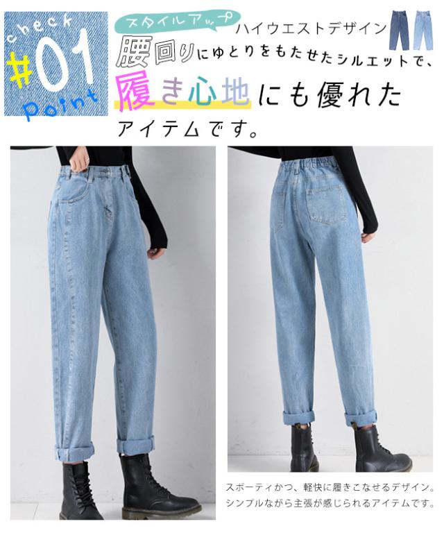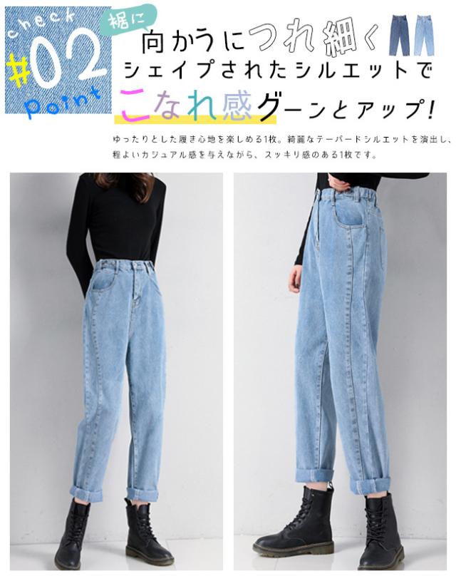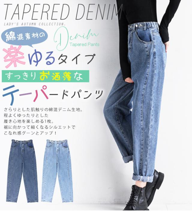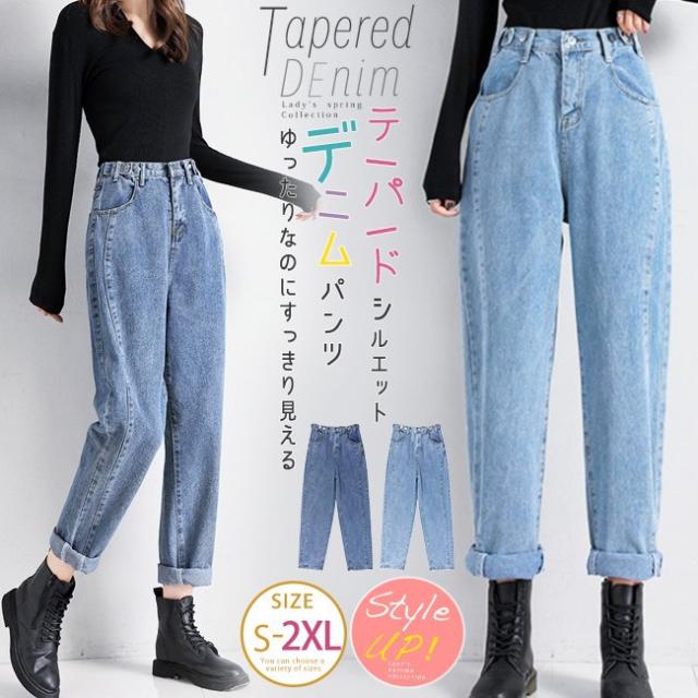 デニムパンツ ジーンズ ウエストゴム ハイウエスト レディース 春秋 大きいサイズあり ゆったり ジーンズ 服 テーパードパンツ