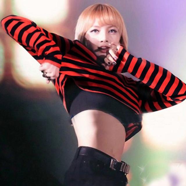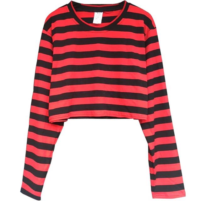 ボーダー柄 長袖 ゆったり tシャツ ヘソ出しトップス ショート丈 棉トップス レディース 着痩せ 女性用 ヒップホップ ダンス衣装 ボーダー柄