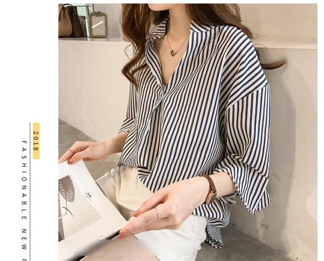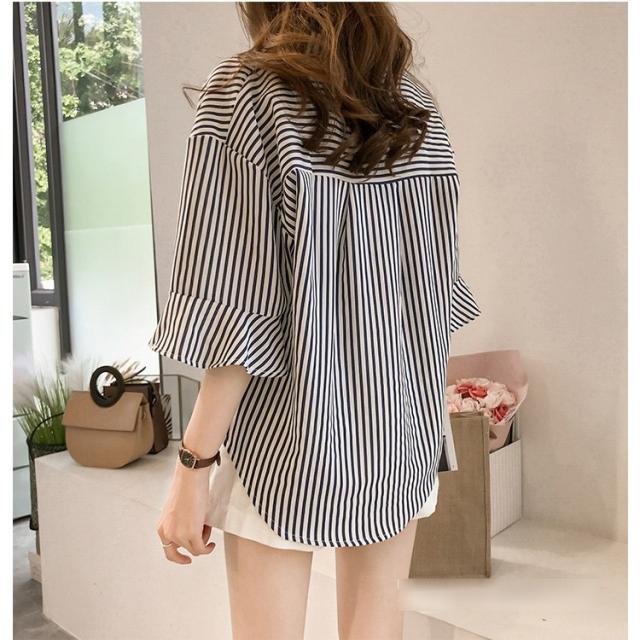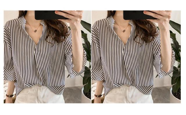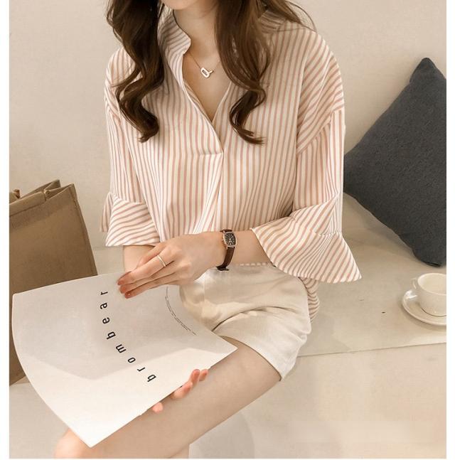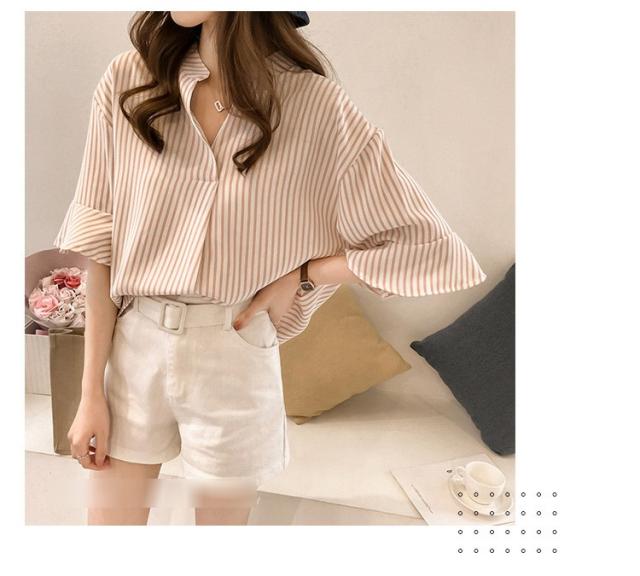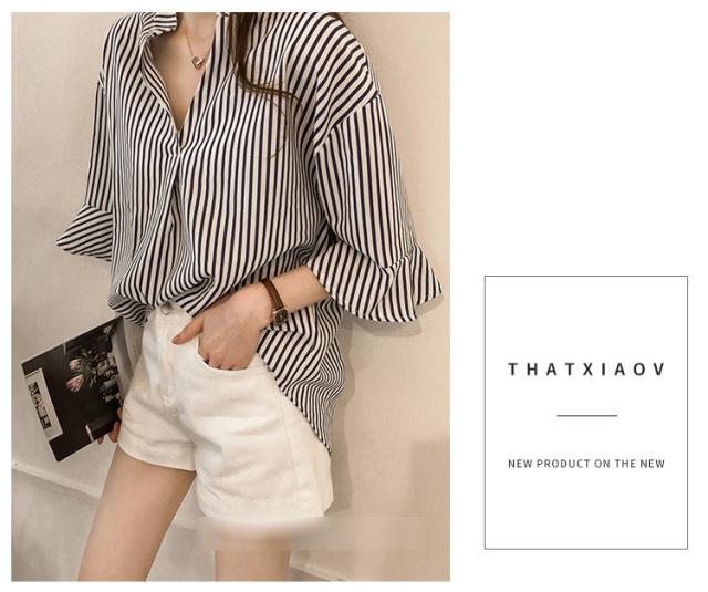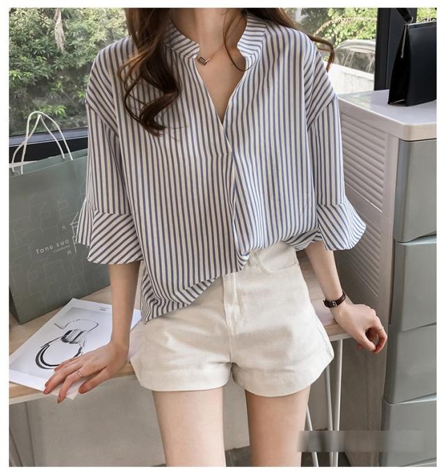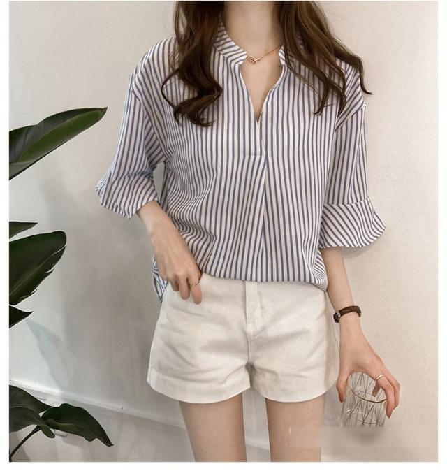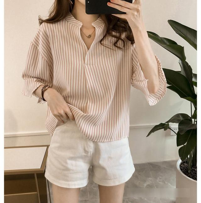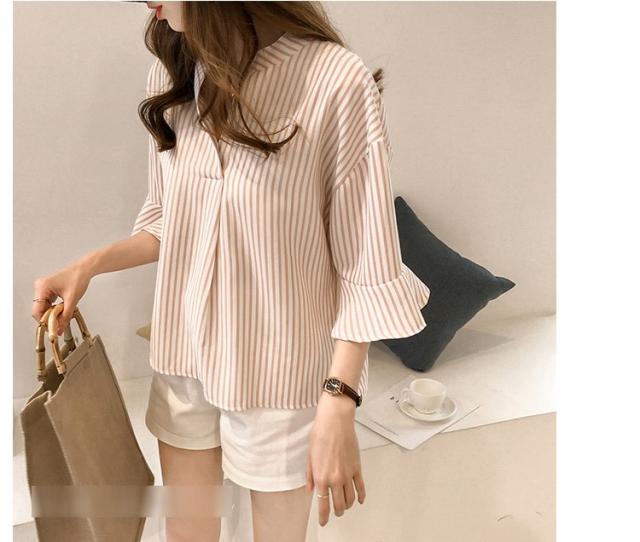 ブラウス オシャレ 春夏 オシャレフォーマル ブラウス vネック シャツ ボーダーブラウス レディース ブラウス トップス ゆったり 通勤 OL大人 五分袖ブラウス