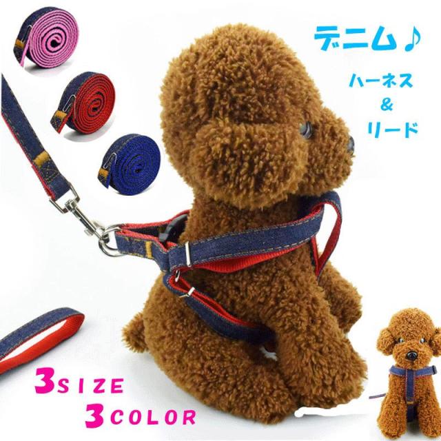 デニム / デニム ハーネス デニムハーネスリード ハーネスリードセット おしゃれ han-004【