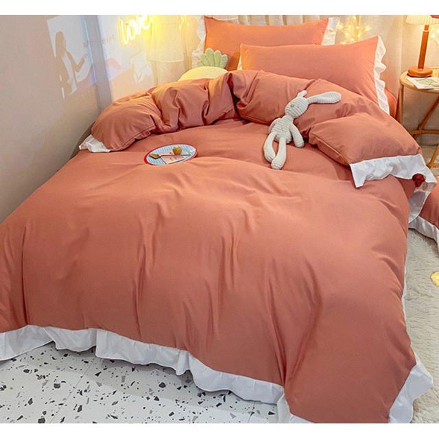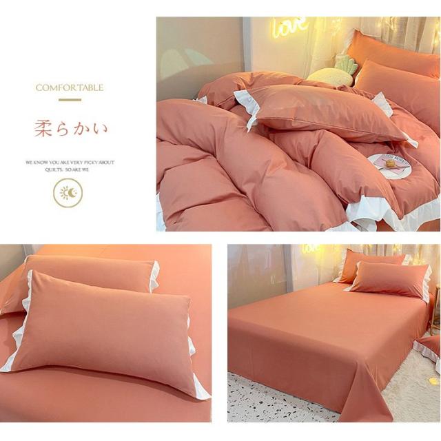 寝具セット4点セット 布団カバー ベッドカバー ベッドカバー 春秋 無地 ベッドカバー 掛け布団カバー シングル ダブル 柔らかい 綿 おしゃれ 寝具カバー