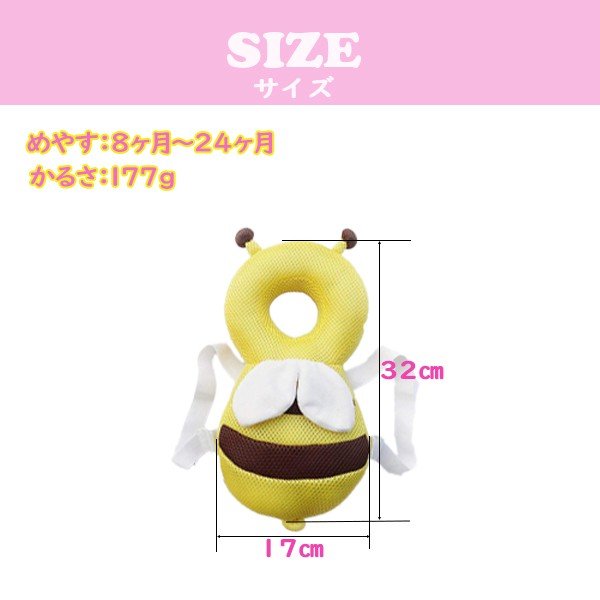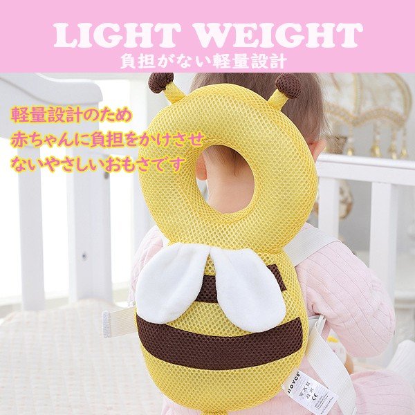 赤ちゃん 赤ちゃん 転ぶ 頭保護 頭ガード 転倒防止 ベビー用品 みつばち クッション 補助ベルト付 メッシュ 出産祝い プレゼント リュック