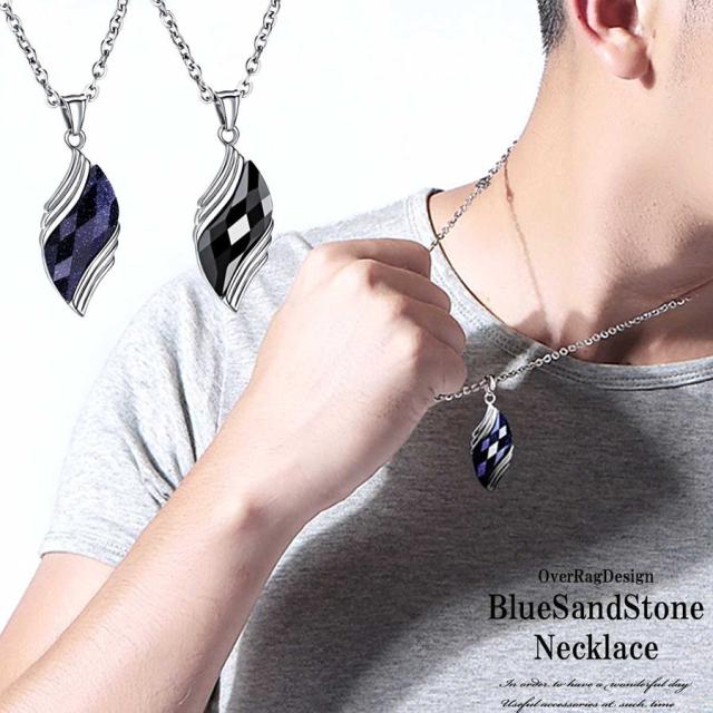 ステンレス メンズ メンズ ネックレス 宇宙 ブルーサンドストーンステンレスネックレス ジルコニア メンズネックレス ペンダント