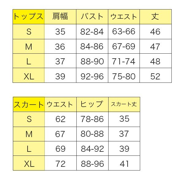 | サイズについての説明 | セット内容:トップス(半袖)・スカート・蝶ネクタイの3点セットです☆ カラーが6色と豊富なのでお友達と色違いで着るのもいいですね☆ トップスが伸びる生地で一日中着ても疲れません! サイズ展開もS〜XLまであるのでぴったりのサイズがきっと見つかります☆ ーーーー 【トップス】 肩幅:S35 M36 L37 XL39 バスト:S82-84 M84-86 L88-90 XL92-96 ウエスト:S63-66 M67-69 L71-74 XL75-80 丈:S46 M47 L48 XL52 【スカート】 ウエスト:S62 M67 L69 2L72 ヒップ:S78-86 M80-88 L84-92 2L88-96 スカート丈:S35 M37 L39 XL41 【多少の誤差はございます】 ーーーー デザイン一部が予告無しに変更する場合があります。 写真撮影やインスタ映え、イベントやパーティ、キャンギャルやコンパニオン、セクシーコスプレ、二次会・パーティー、クリスマス、忘年会や披露宴、飲み会、ハロウィン、学園祭・文化祭にも!二次会などの景品にすれば大盛り上がり! いろんな場面でMEMEcollectionのコスプレ衣装をお選びください☆ |