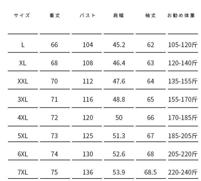 | サイズ | M L XL 2XL 3XL 4XL 5XL 6XL 7XL |