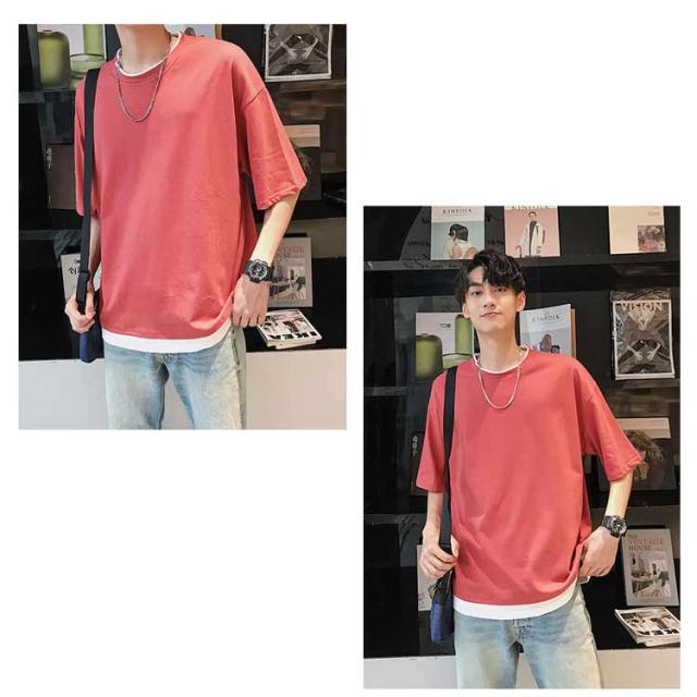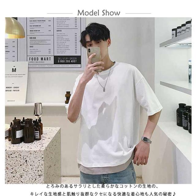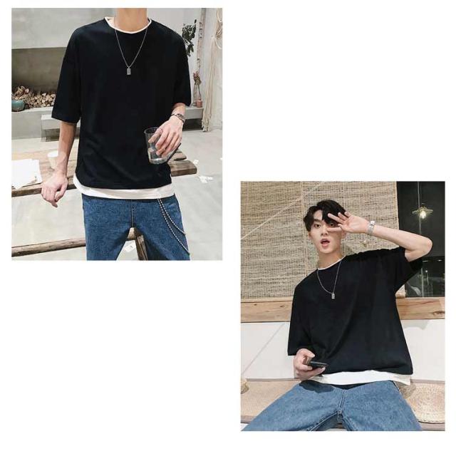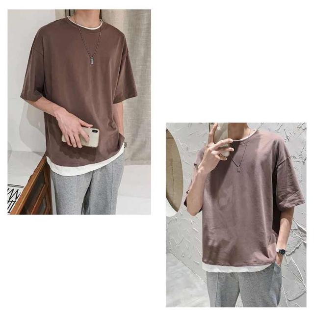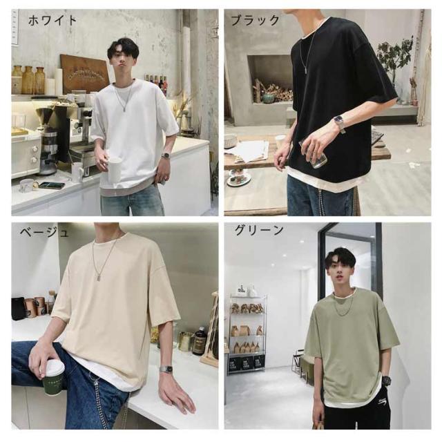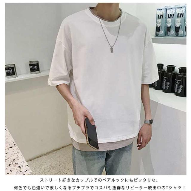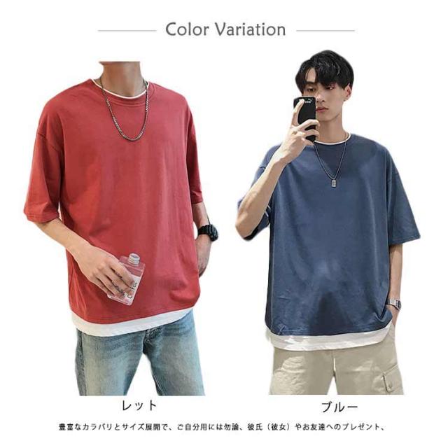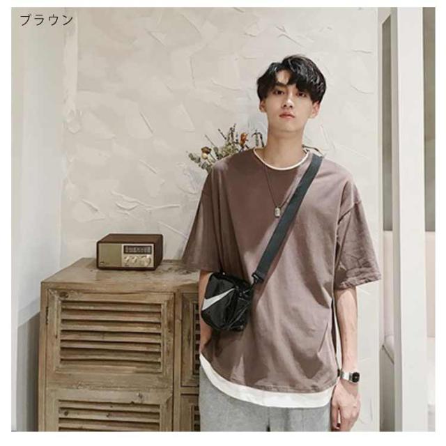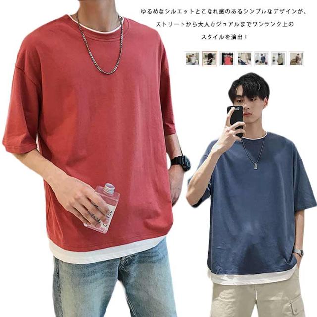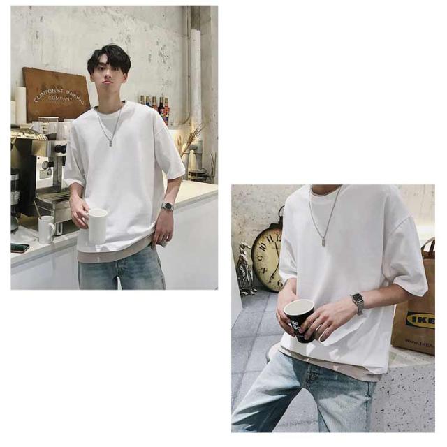 メンズ 半袖 クルーネック レイヤード おしゃれ ビッグシルエット Tシャツ 重ね着風 レディース 送料無料 シンプル 韓国 メンズファッション 夏 ストリート カップル 送料無料