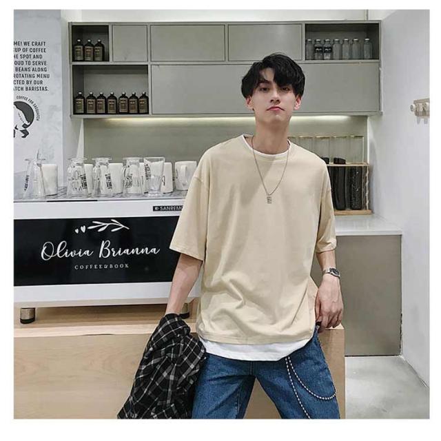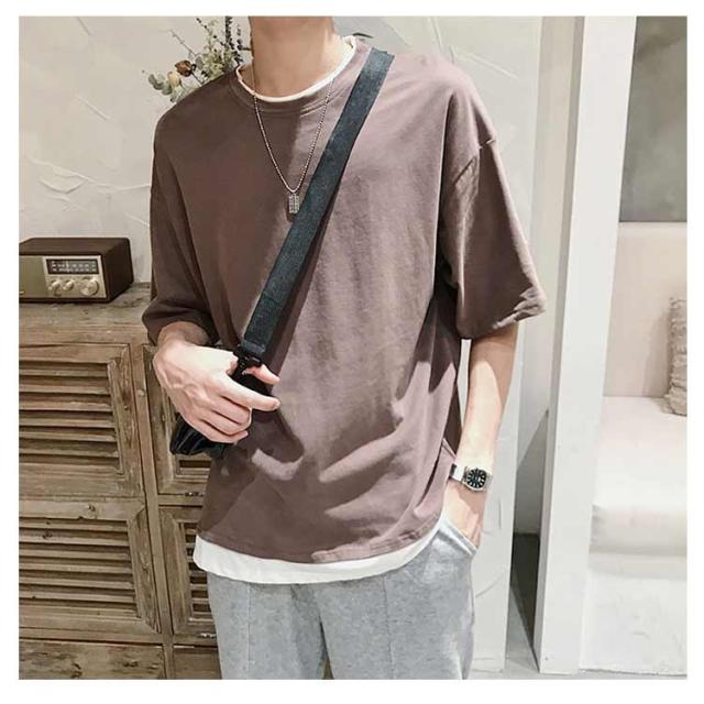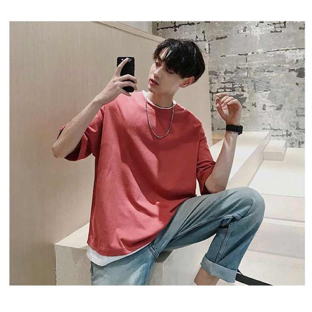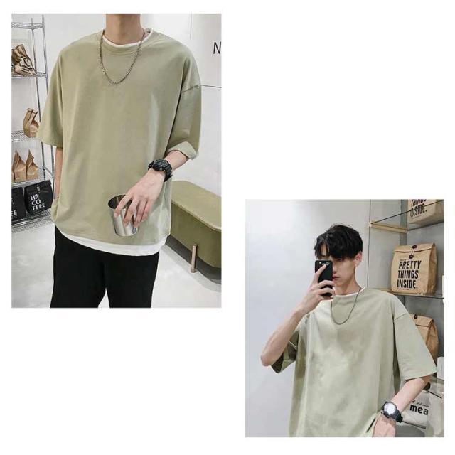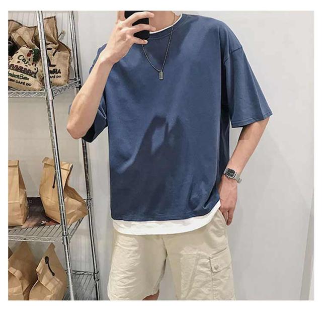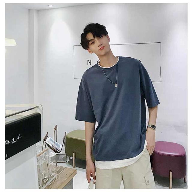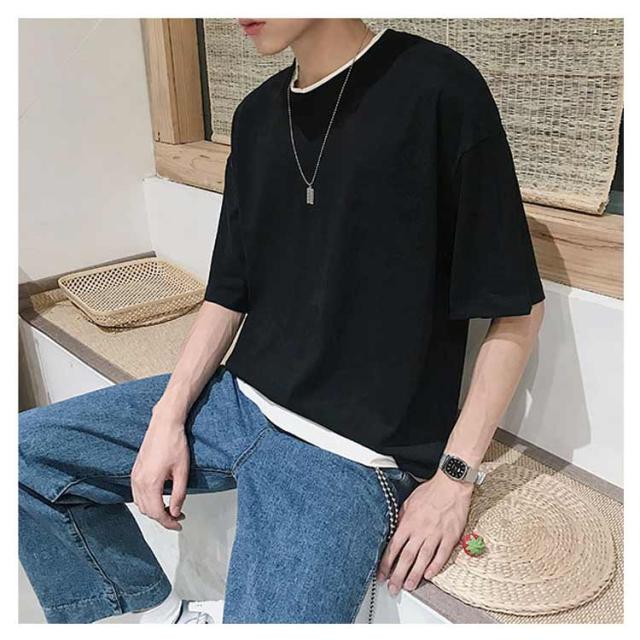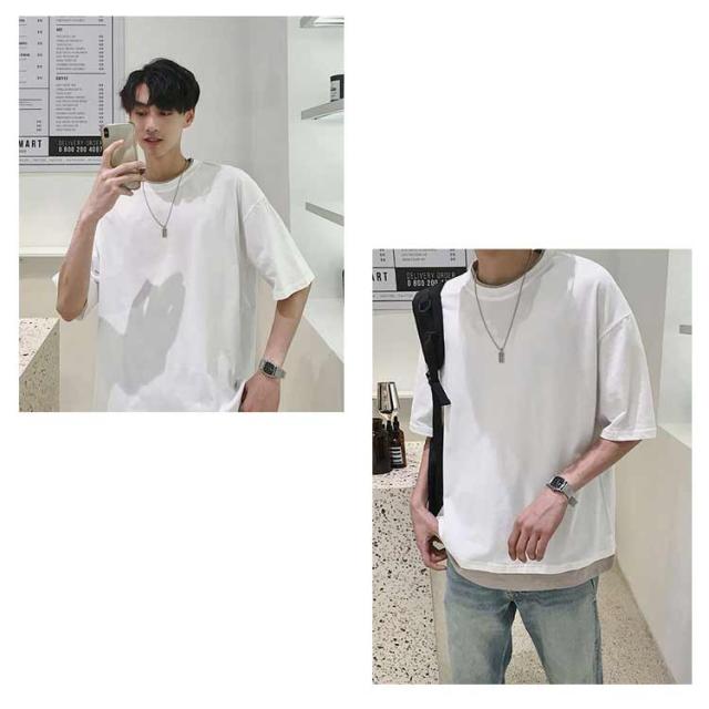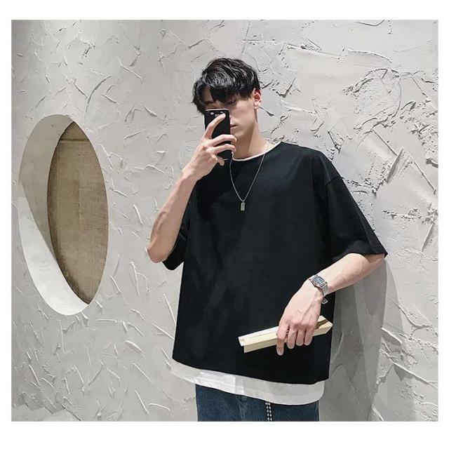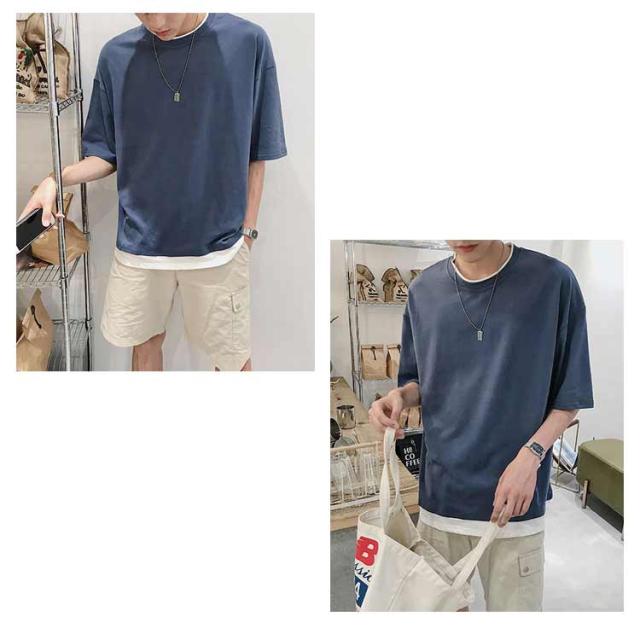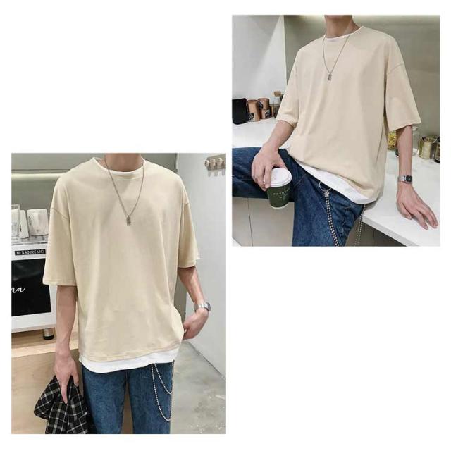 メンズ 半袖 クルーネック レイヤード おしゃれ ビッグシルエット Tシャツ 重ね着風 レディース 送料無料 シンプル 韓国 メンズファッション 夏 ストリート カップル 送料無料