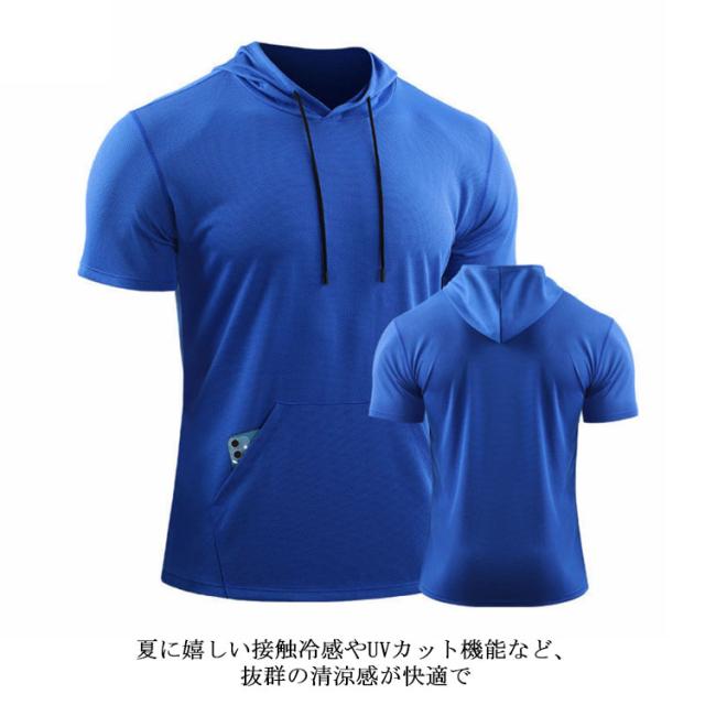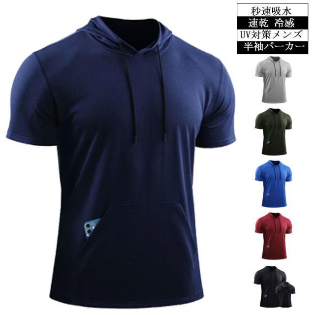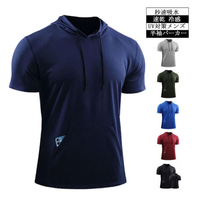 半袖パーカー 秒速吸水パーカー パーカー 送料無料 半袖パーカー 送料無料 吸汗速乾 UV対策 ウェア ランキング トレーニング メンズ