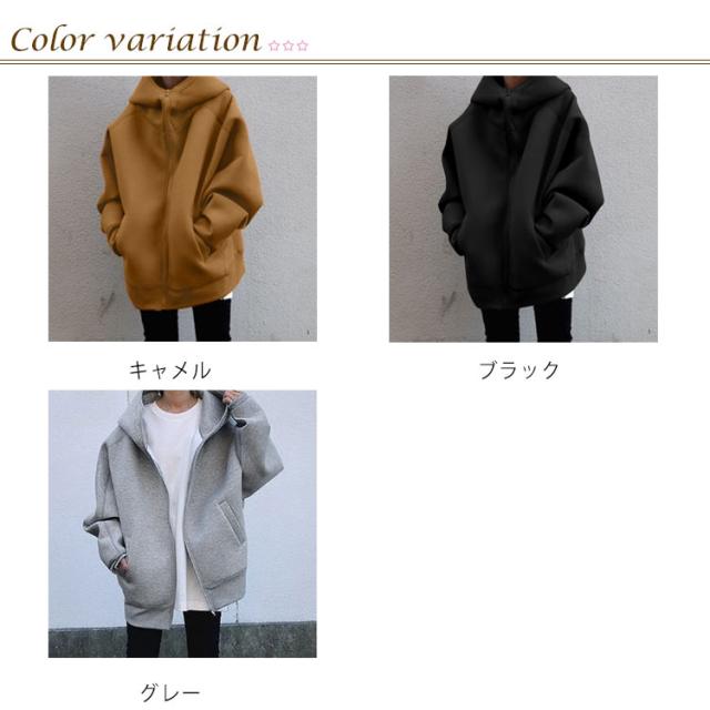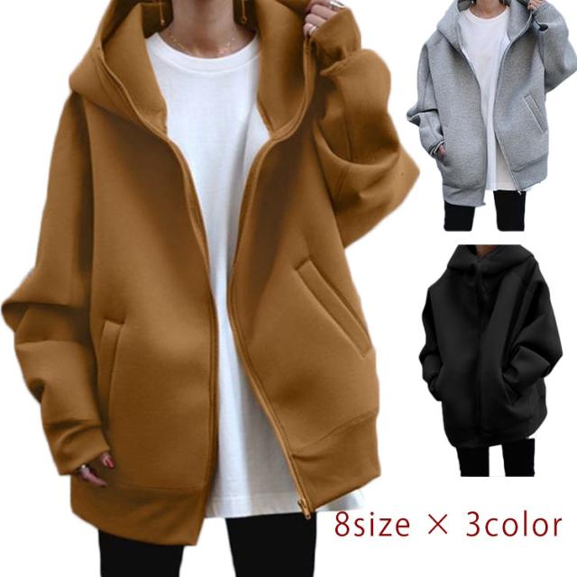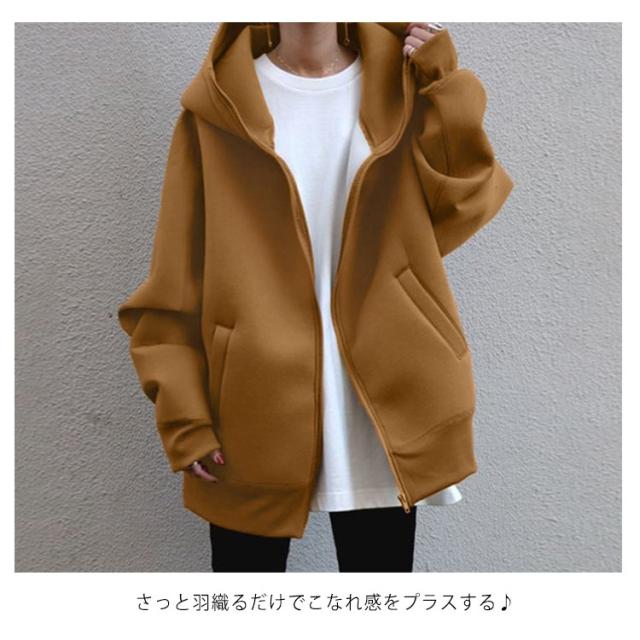 コート マウンテンパーカー パーカー ジップアップ 羽織り ブルゾン レディース XL ジャンパー フード付き キャメル 体型カバー 長め丈 大きいサイズ アウター 大き目 グレー ブラック S M L パーカー 2XL 3XL ロング