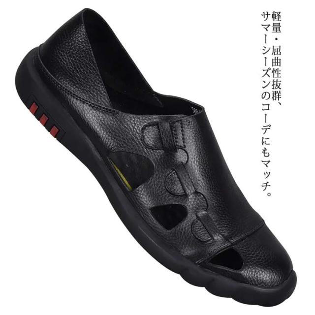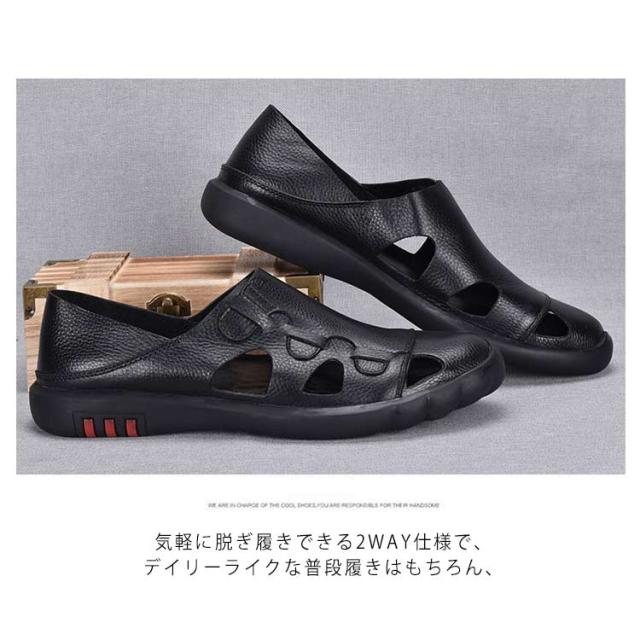 レザー サンダル メンズ スリッポン コンフォートシューズ 春夏秋 紳士靴 踏める2WAY 通気 軽量 レザー カジュアル 軽い