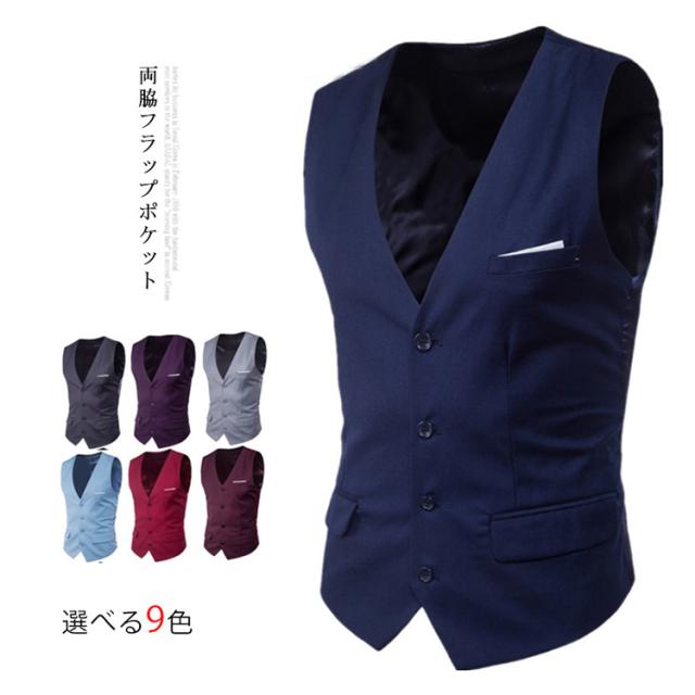 大きいサイズ おしゃれ ビジネス メンズスーツベスト かっこいい スリム トップス メンズスーツベスト 9色 結婚式 通勤 音楽会 ビジネススーツ