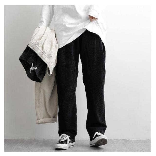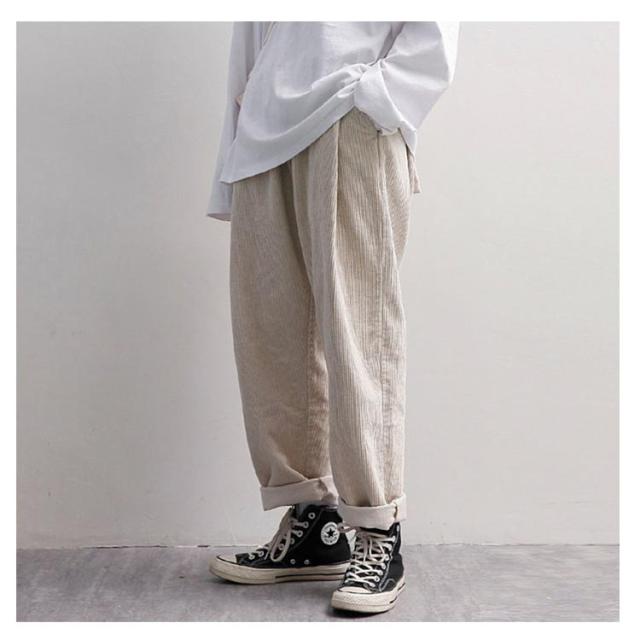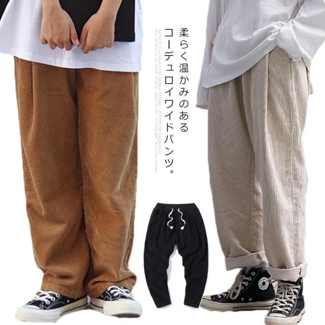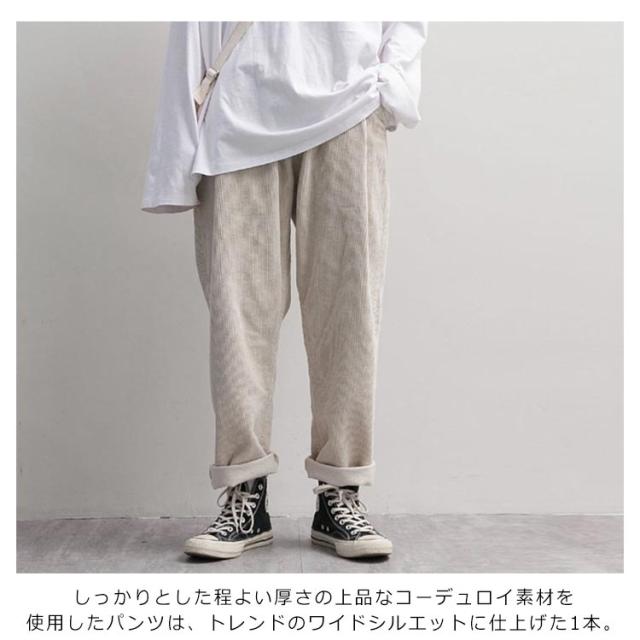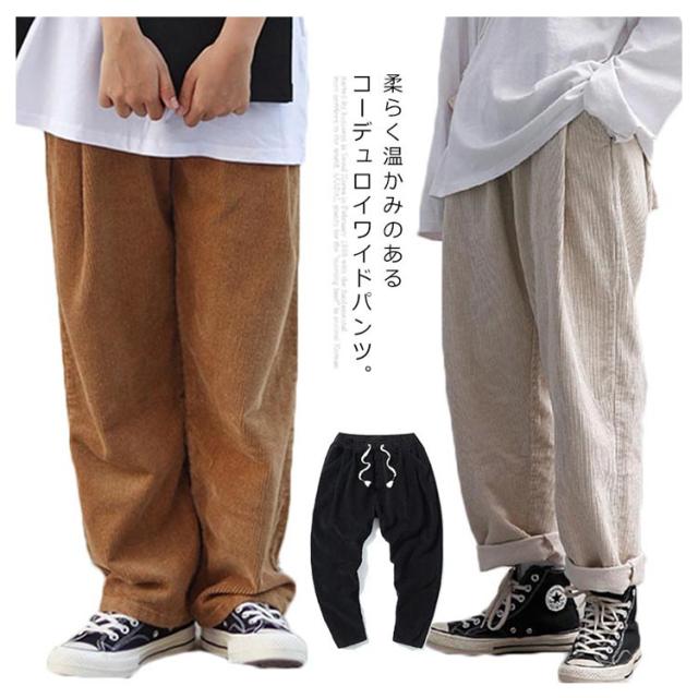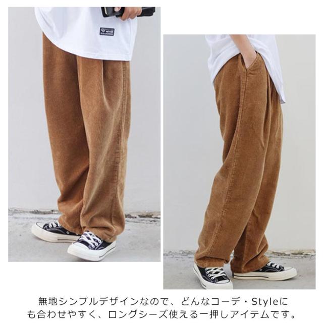 コーデュロイパンツ バルーン ワイドパンツ 秋冬 ロングパンツ イージーパンツ ストリート サルエル 大きいサイズ テーパードパンツ ウェストゴム コーデュロイパンツ 無地 アメカジ メンズ
