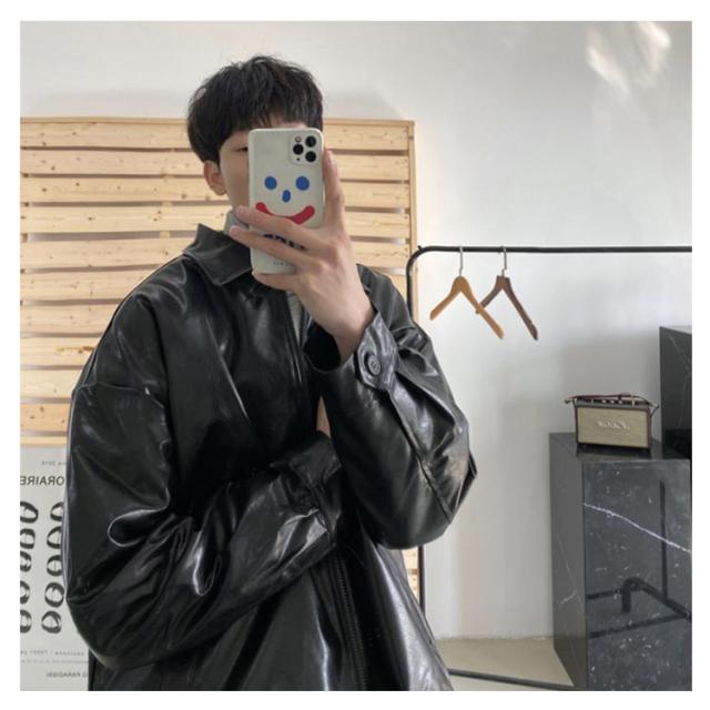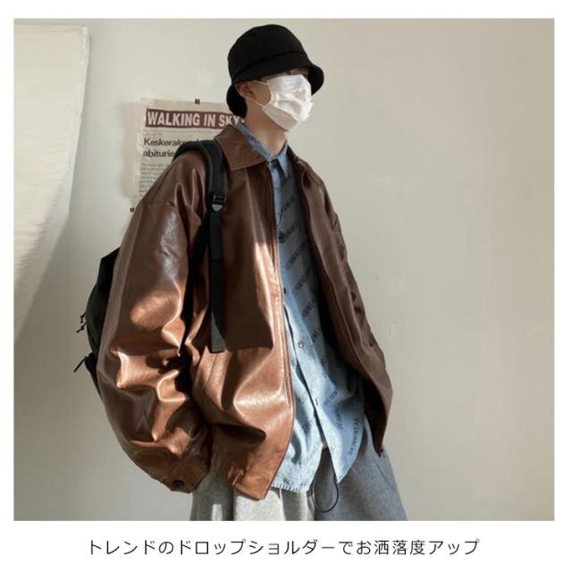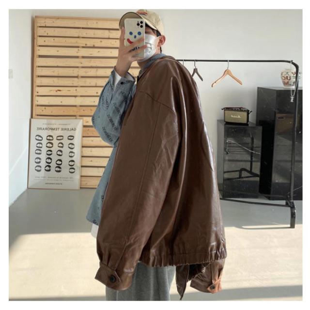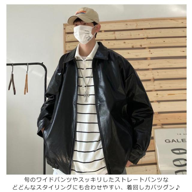 レザージャケット メンズ PUレザー オーバーサイズ BIGサイズ 韓国ファッション ショート丈 ブルゾン アウター ゆったり アメカジ ビター系 ライダースジャケット ジャンパー お洒落 秋冬 春