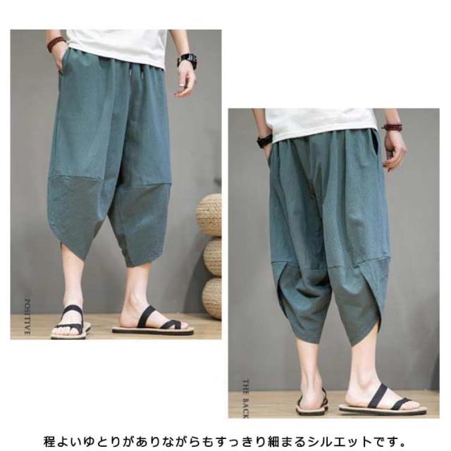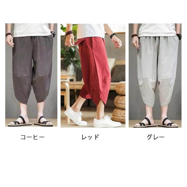 リネンパンツ メンズ クロップドパンツ ひざ下 7分丈 テーパードパンツ ハーフパンツ カラーパンツ ズボン 薄手 涼しげ サルエルパンツ 綿麻 ジョガーパンツ 大きいサイズ スポーツ ゆったり おしゃれ カジュアル 無地 夏服 春服 送料無料 父の日ギフト プレゼント 送料無料