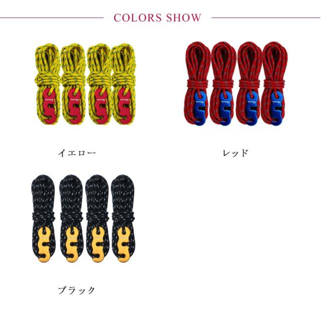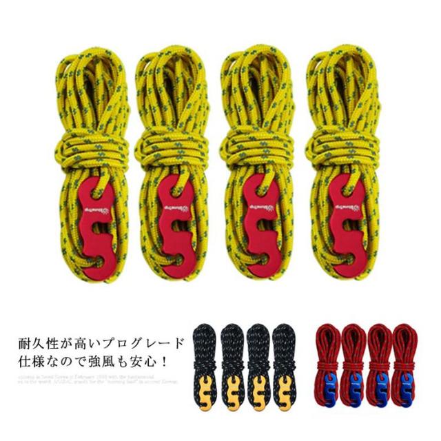 自在金具 パラコード テントロープ 350kg 反射材入り 4m×4本組 耐荷重 ガイロープ パラコード 丈夫 頑丈 耐久性に優れ 防災グッズ タープロープ アウトドア ガイロープ