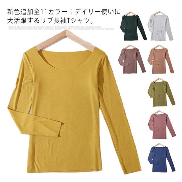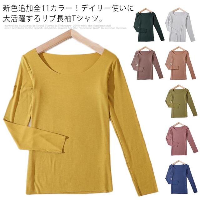 長袖 リブニット 新色追加全11カラー!リブ長袖Tシャツ クルーネック ニットソー リブニットソー インナー ニットトップス 無地tシャツ 新色追加全11カラー!リブ長袖Tシャツ トップス リブ編み ベーシック 春 秋 冬 おしゃれ tシャツ