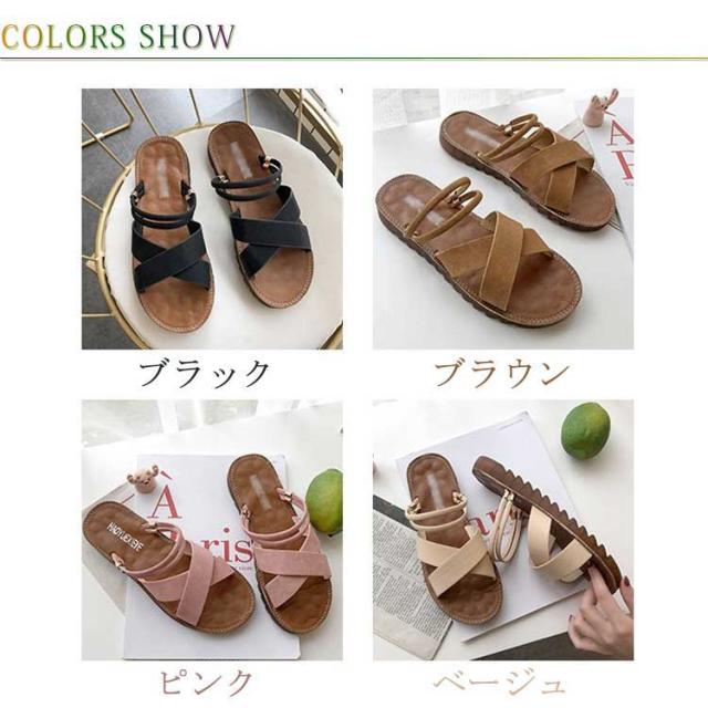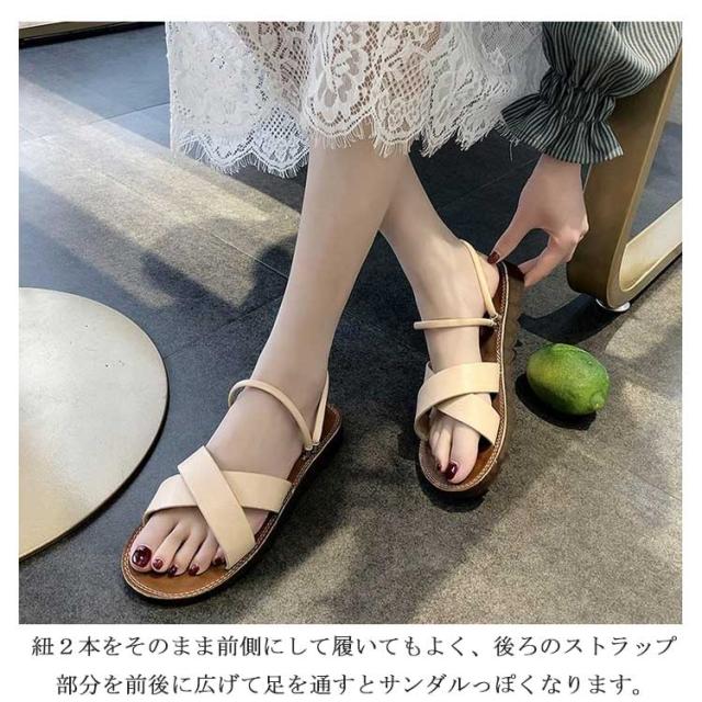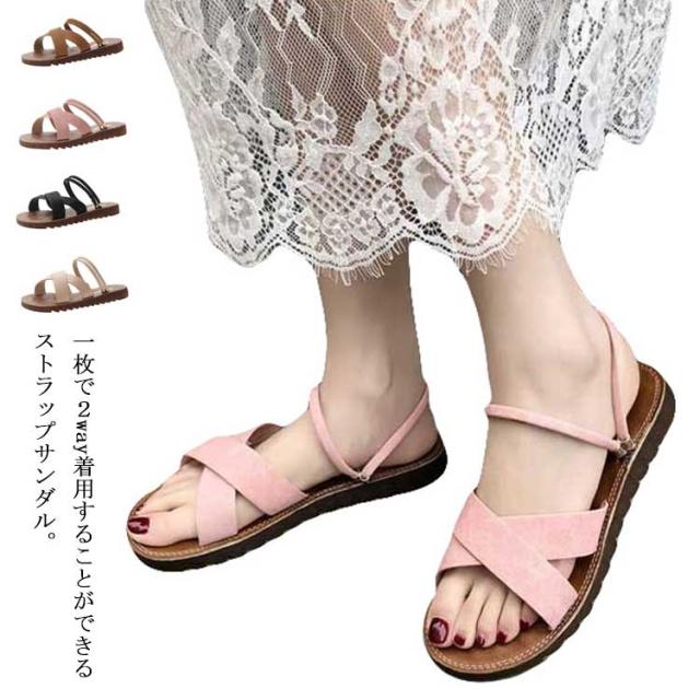 フラットサンダル ローヒール 2way 無地 レディース ペタンコサンダル ミュール 美脚靴 送料無料 ビーチサンダル 滑り止め 夏 クロスベルト トレンド サマーサンダル 靴 シューズ フラットサンダル ストラップ