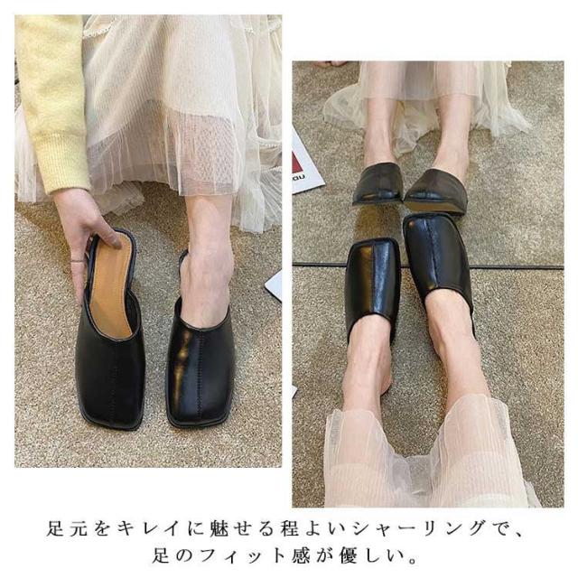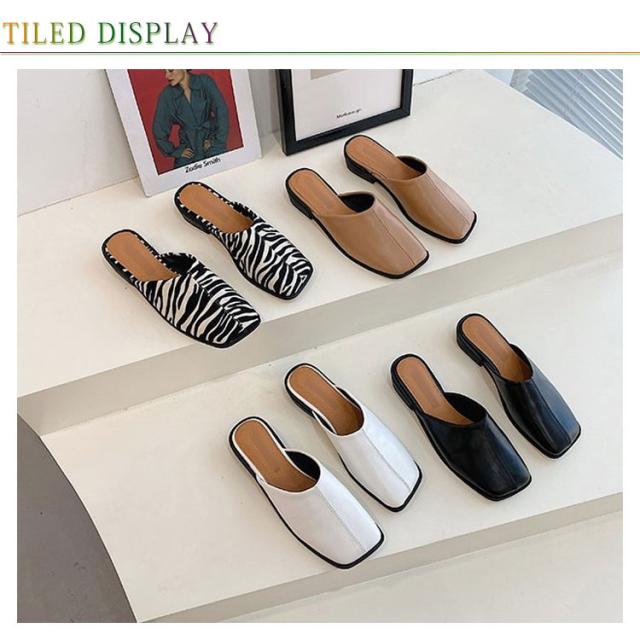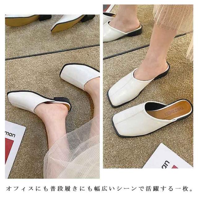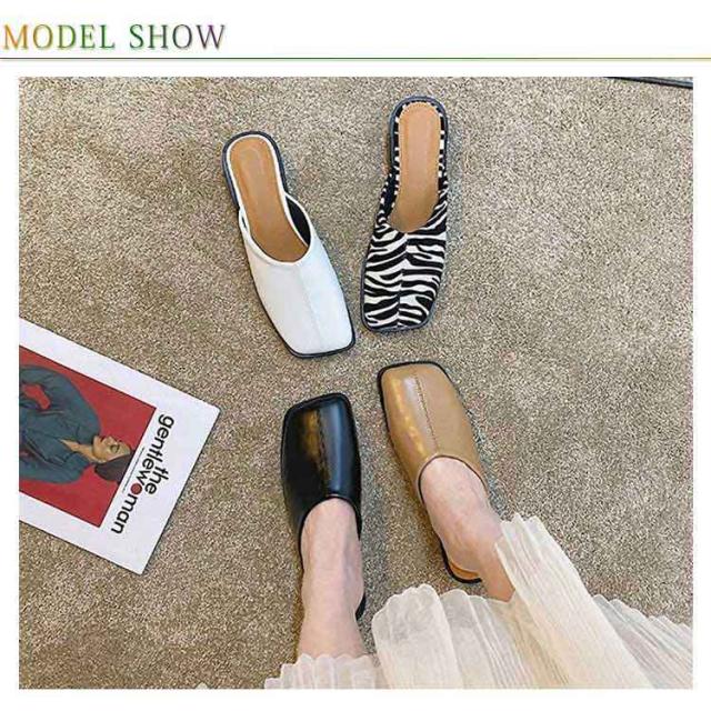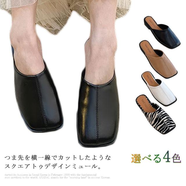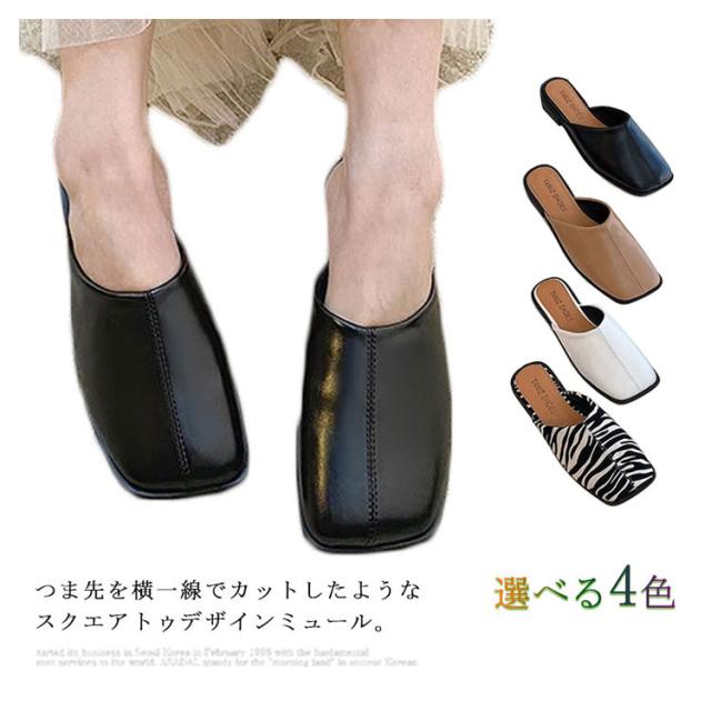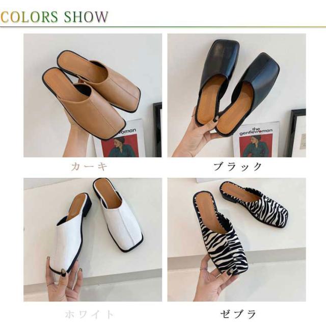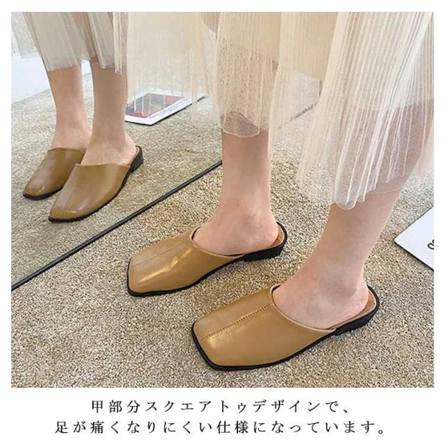 大人カジュアル フラット サンダル レディース センターシーム入り 型押し 春夏 大きいサイズ スクエアトゥ スリッパ ローヒール ミュール 前ふさがり チャンキー スクエアトゥ 小さいサイズ シューズ ぺたんこ ぺたんこ