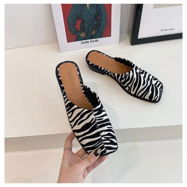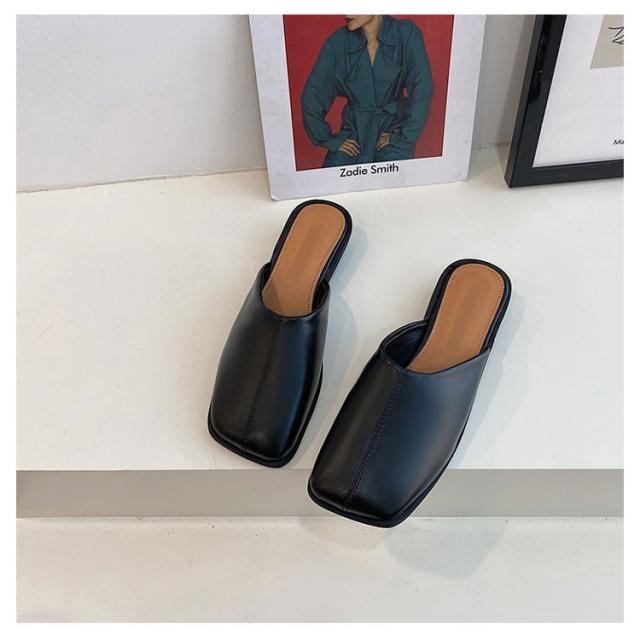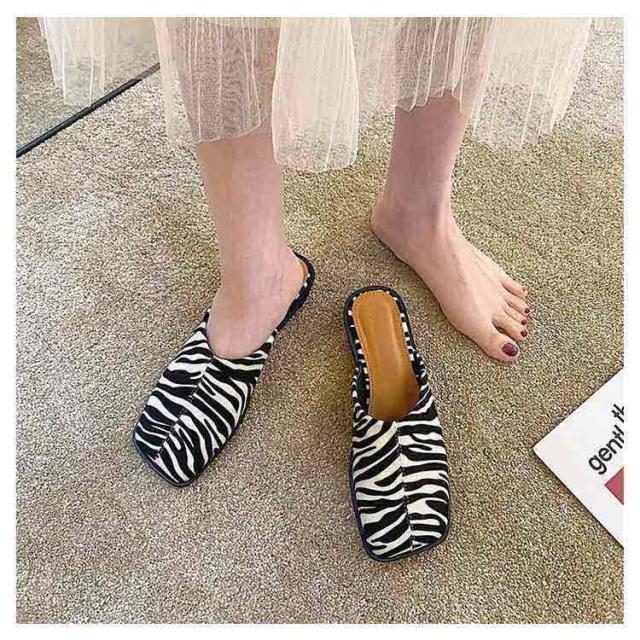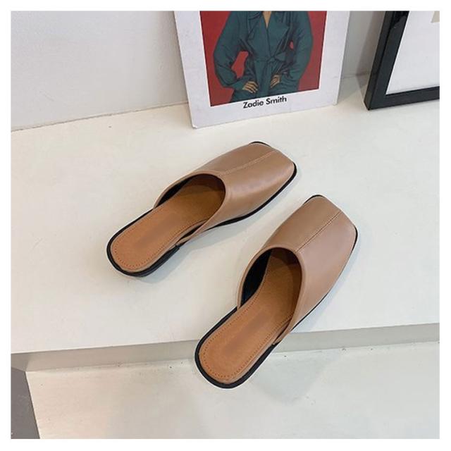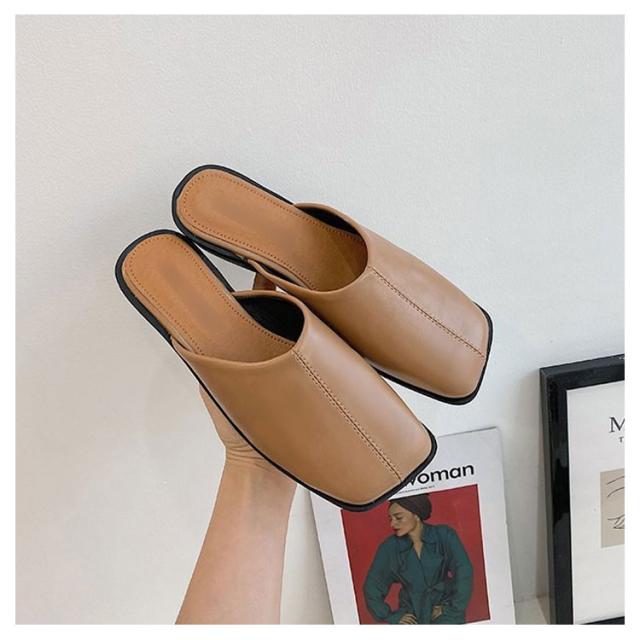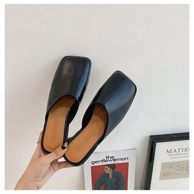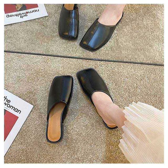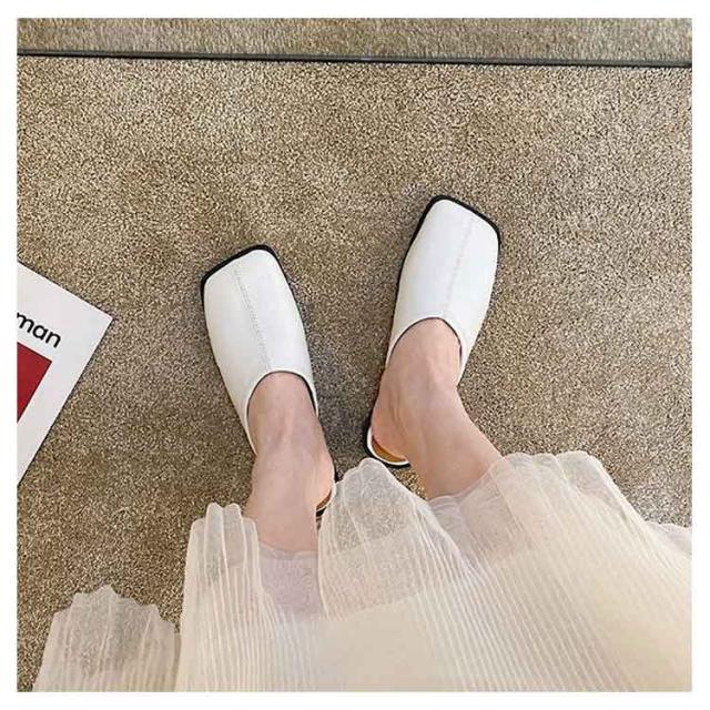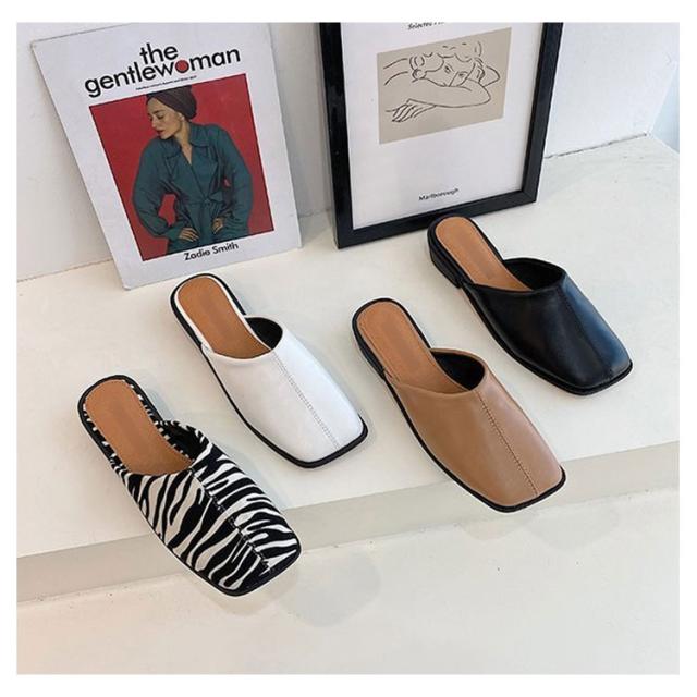 大人カジュアル フラット サンダル レディース センターシーム入り 型押し 春夏 大きいサイズ スクエアトゥ スリッパ ローヒール ミュール 前ふさがり チャンキー スクエアトゥ 小さいサイズ シューズ ぺたんこ ぺたんこ