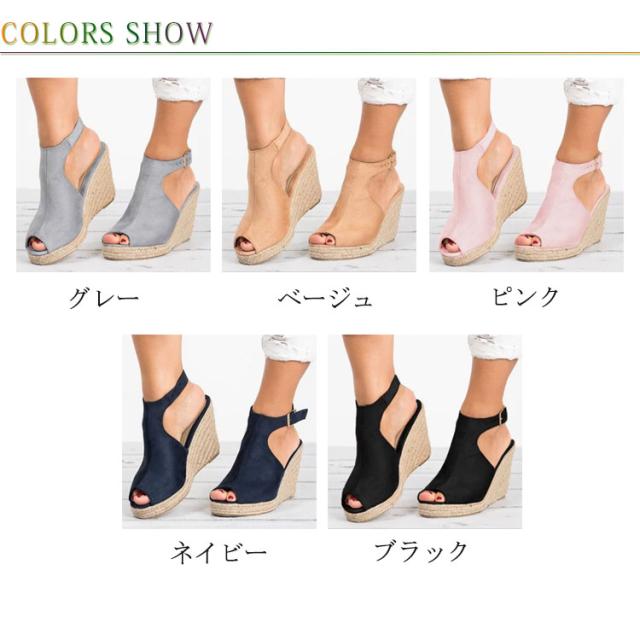 オープントゥ 無地 アンクルストラップ パンプス ウェッジソール エスパドリーユ 厚底 サボ 春夏 ジュートサンダル 靴 レディース ハイヒール ストライプ ウェッジソール 幅広 サンダル