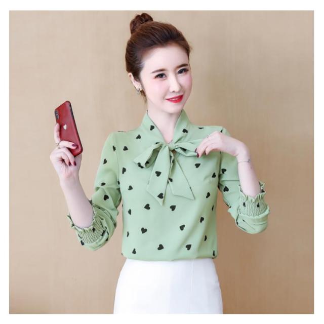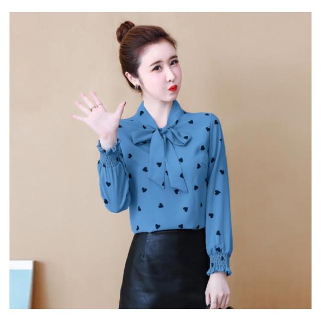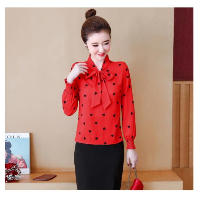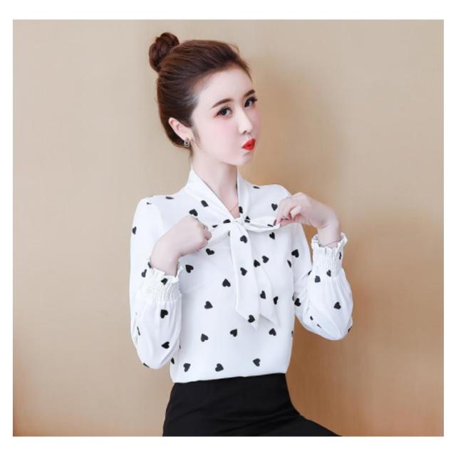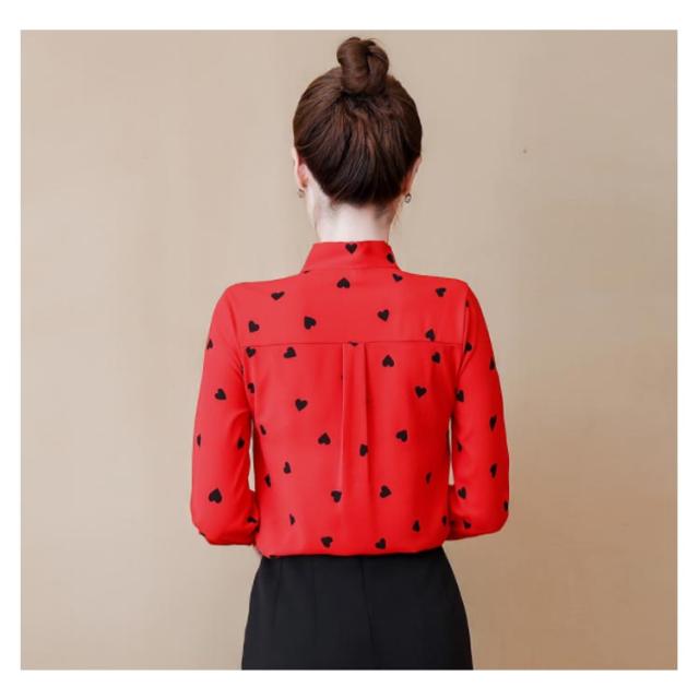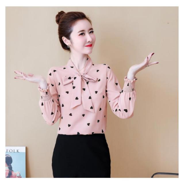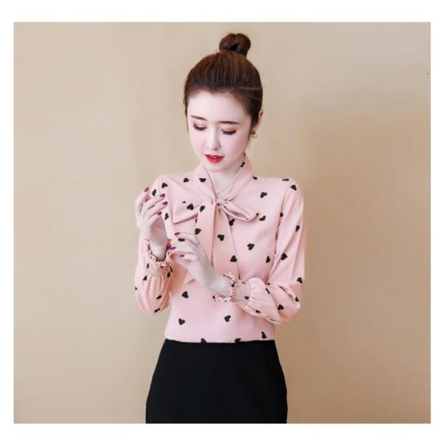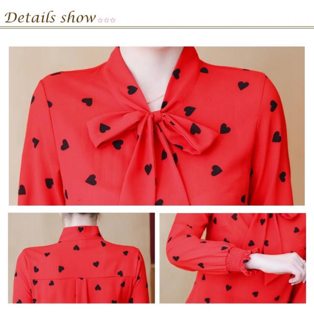 シャツ ブラウス 全6色×6サイズ!ハート柄シャツ 長袖 レディース リボンシャツ ボウタイシャツ リボン付き 長袖シャツ 大きサイズ ハート柄 春 全6色×6サイズ!ハート柄シャツ
