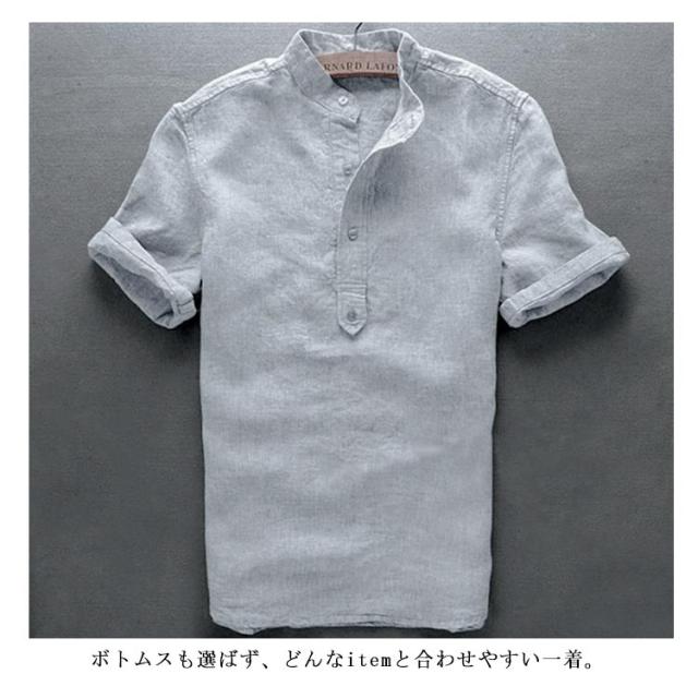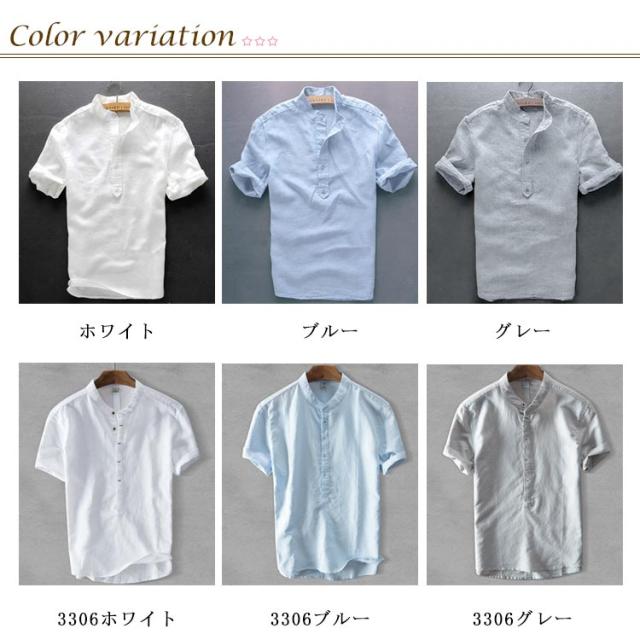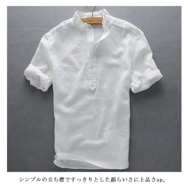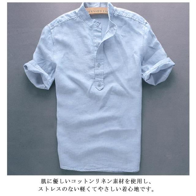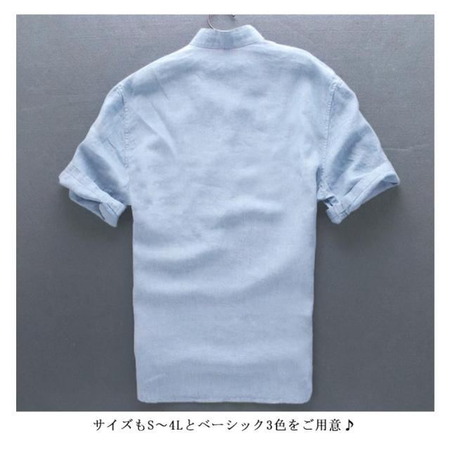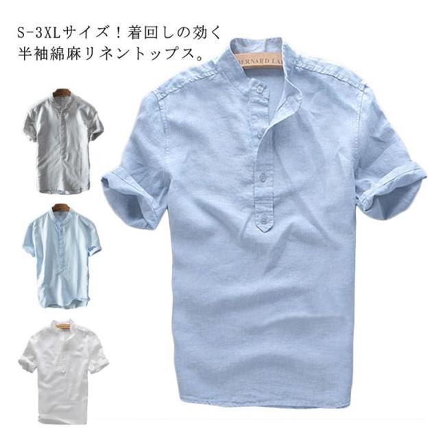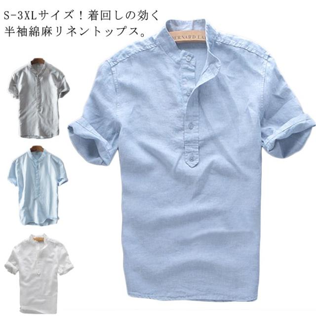 ブラウス S-3XLサイズ!シャツ S-3XLサイズ!シャツ 綿麻 半袖シャツ リネンシャツ メンズ カジュアルシャツ トップス 麻 プルオーバー シンプル 無地 夏服 立ち襟