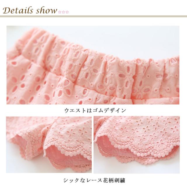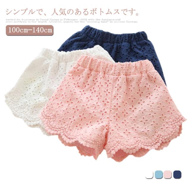 短パン 女の子 子供パンツ ボトムス ショートパンツ ウエストゴム フリル レース刺繍 夏服 出産祝い プレゼント 子供パンツ