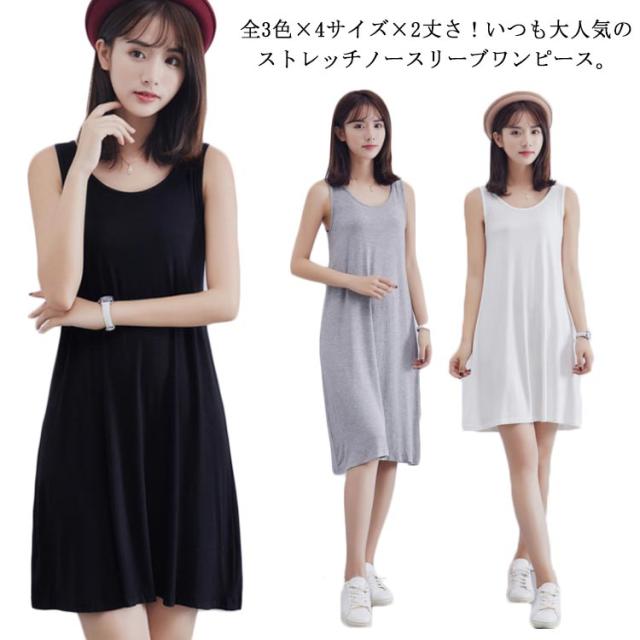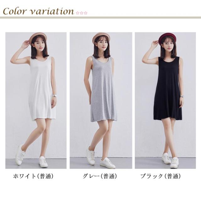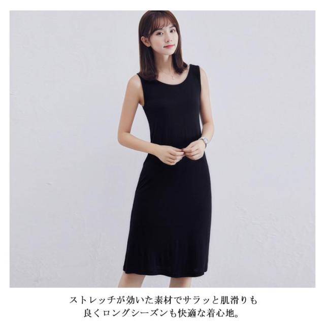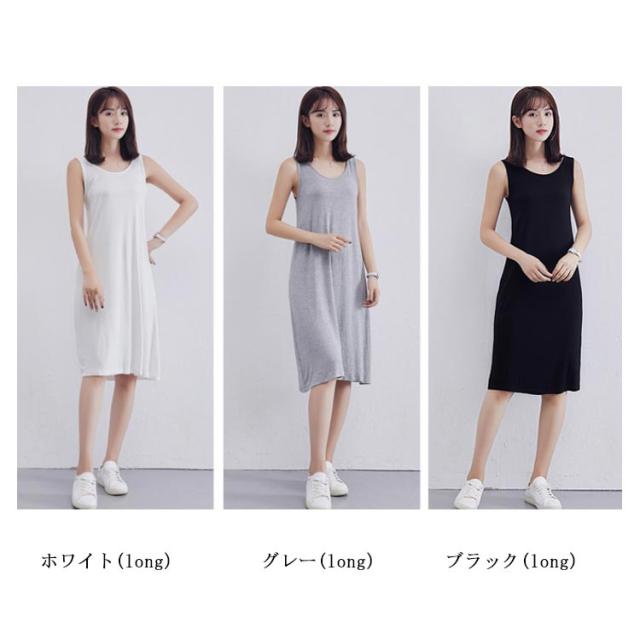 インナーワンピース タンクトップ型 ノースリーブ 全3色×4サイズ×2丈さ!スリップ ワンピース 全3色×4サイズ×2丈さ!スリップ ペチコート ワンピース aライン ミディアム 膝丈 シンプル 無地 タンクワンピース