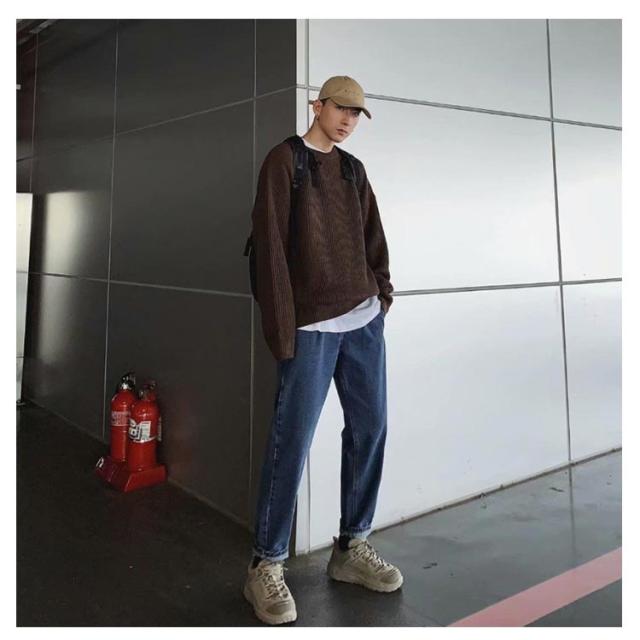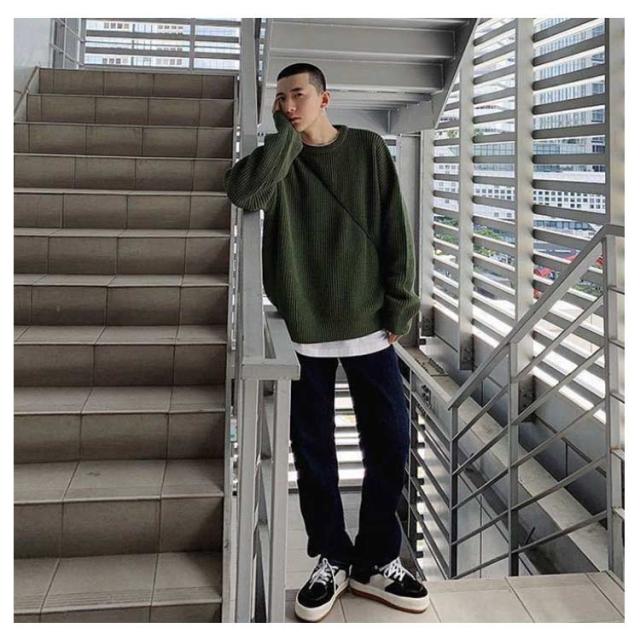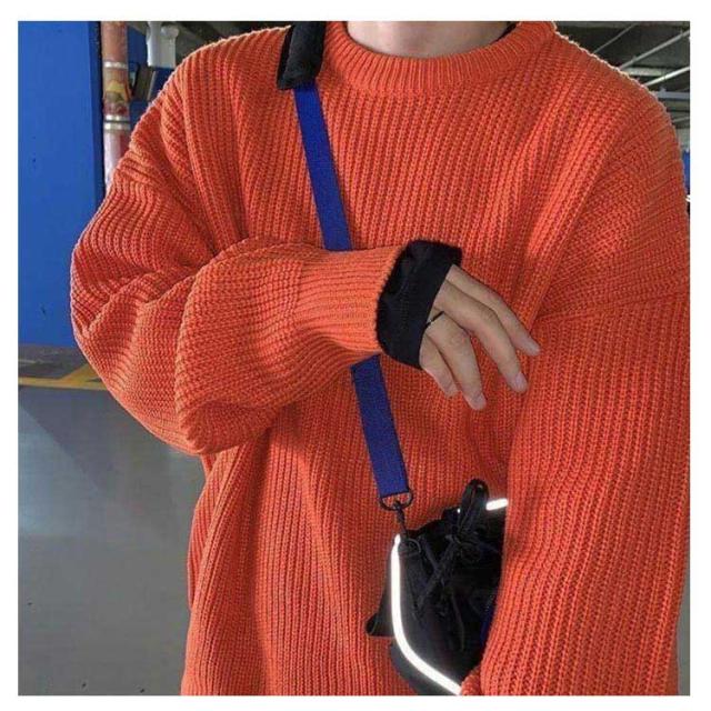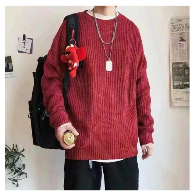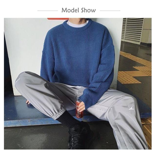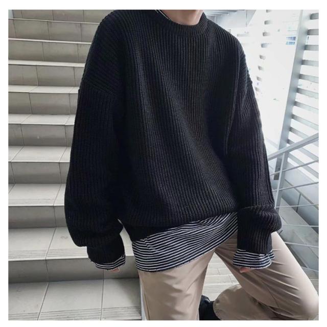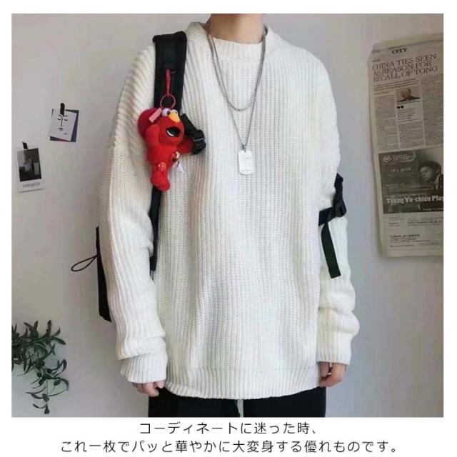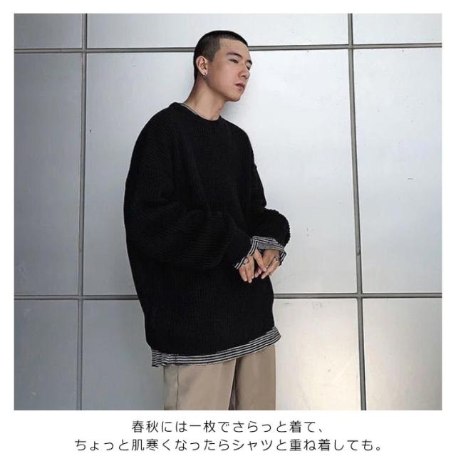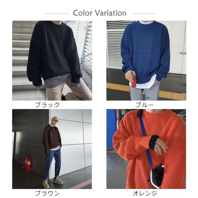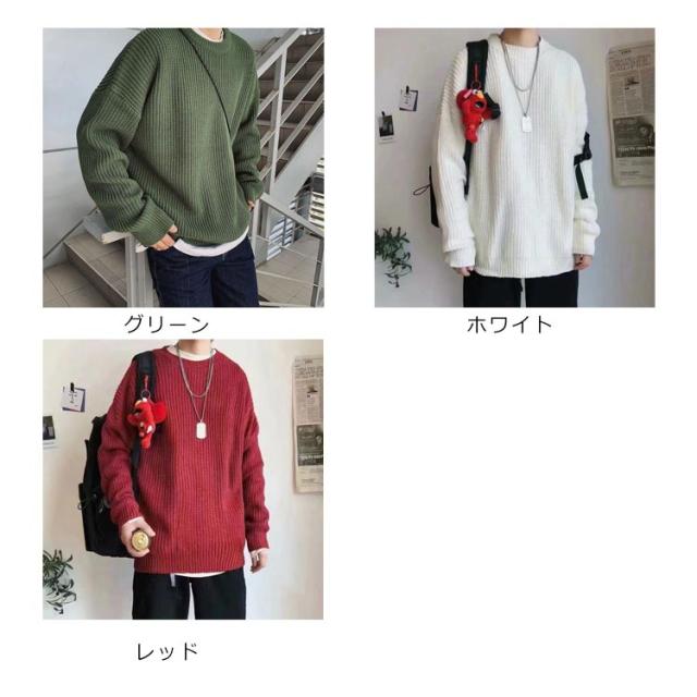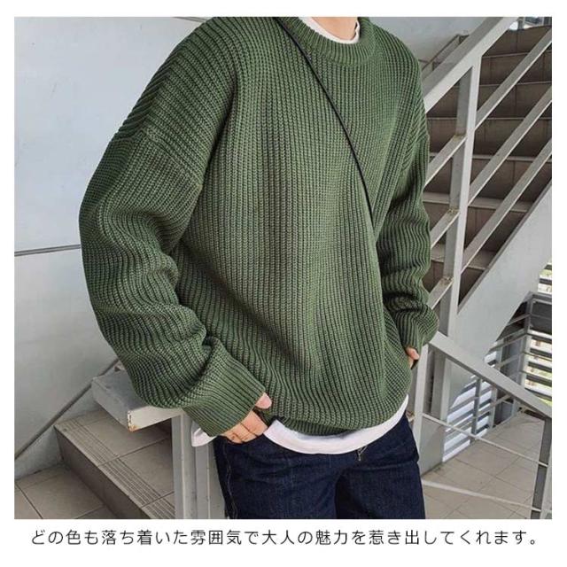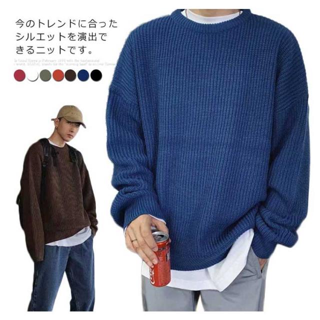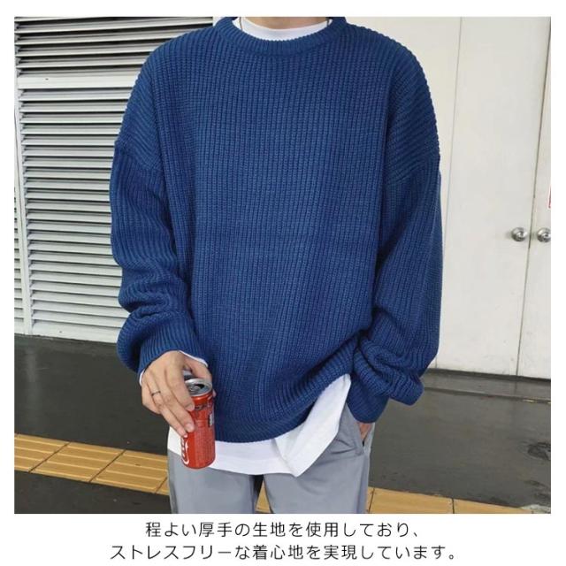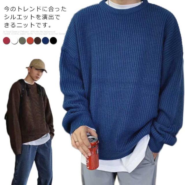 メンズ ニットセーター ゆったり クールネック ニットセーター ビックシルエット プルオーバー セーター 無地 春秋冬 厚手 カジュアル シンプル トップス
