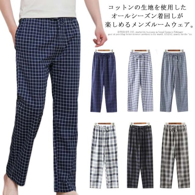 寝間着 パジャマ 長ズボン ルームウェア カジュアル 部屋着 パンツ ボトムス 通気 パジャマ チェック柄 ポケット付き オシャレ 吸汗 メンズ ゆったり シンプル 肌に優しい オールシーズン 主人 ロング丈