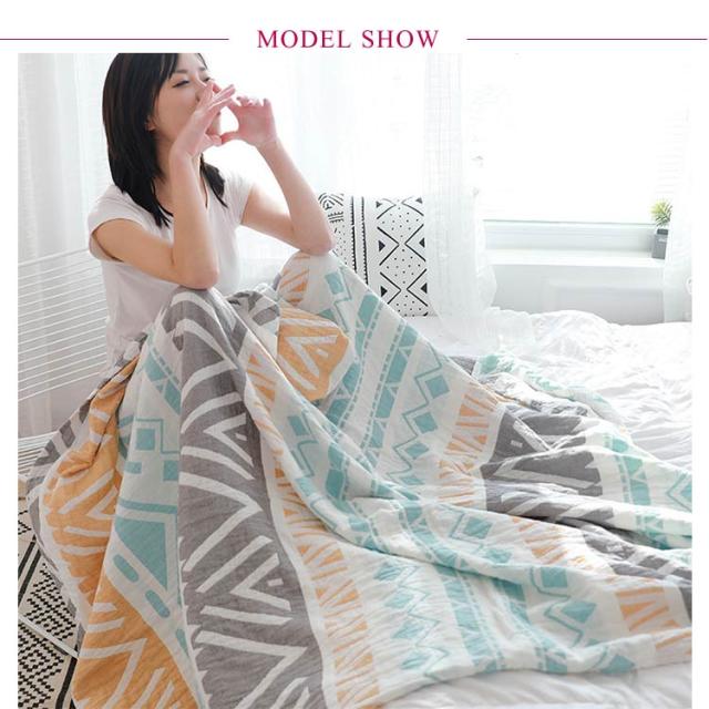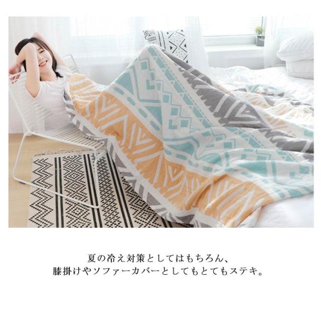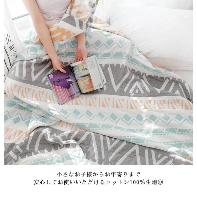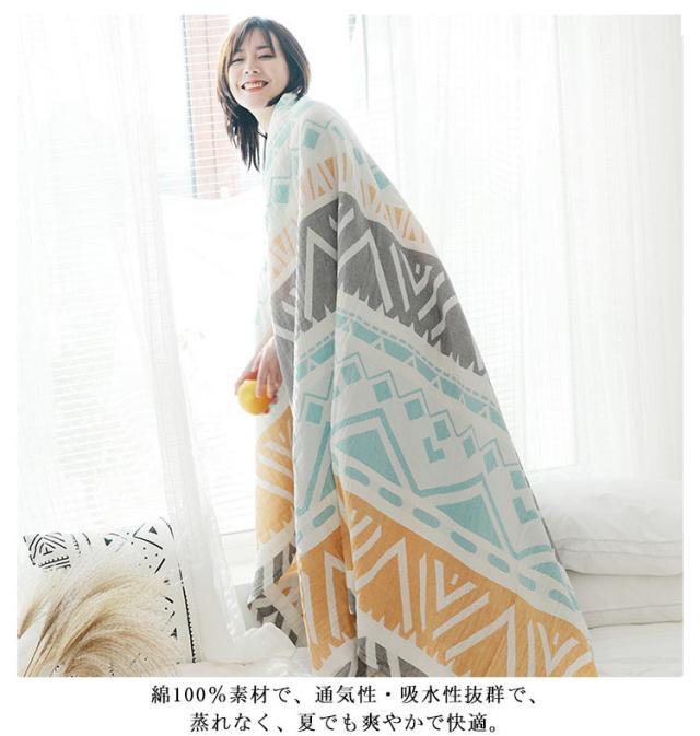 ガーゼケット コットン 肌掛け ガーゼケット ブランケット シングル 150X200 洗濯可能 タオル 綿100% 幾何学模様 エスニック柄 3重